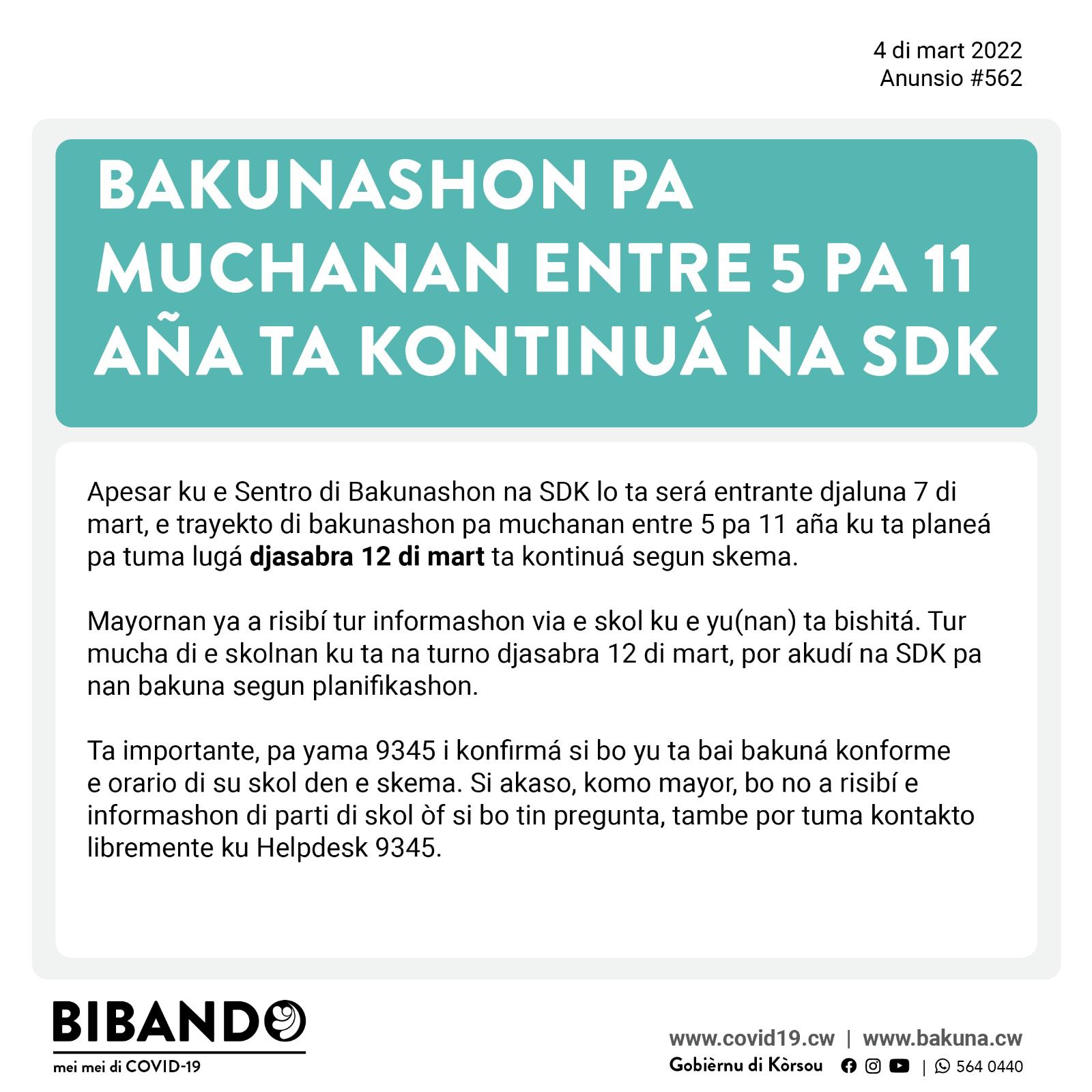 Djabièrnè 4 di mart 2022 – Anunsio públiko sentro di bakunashon