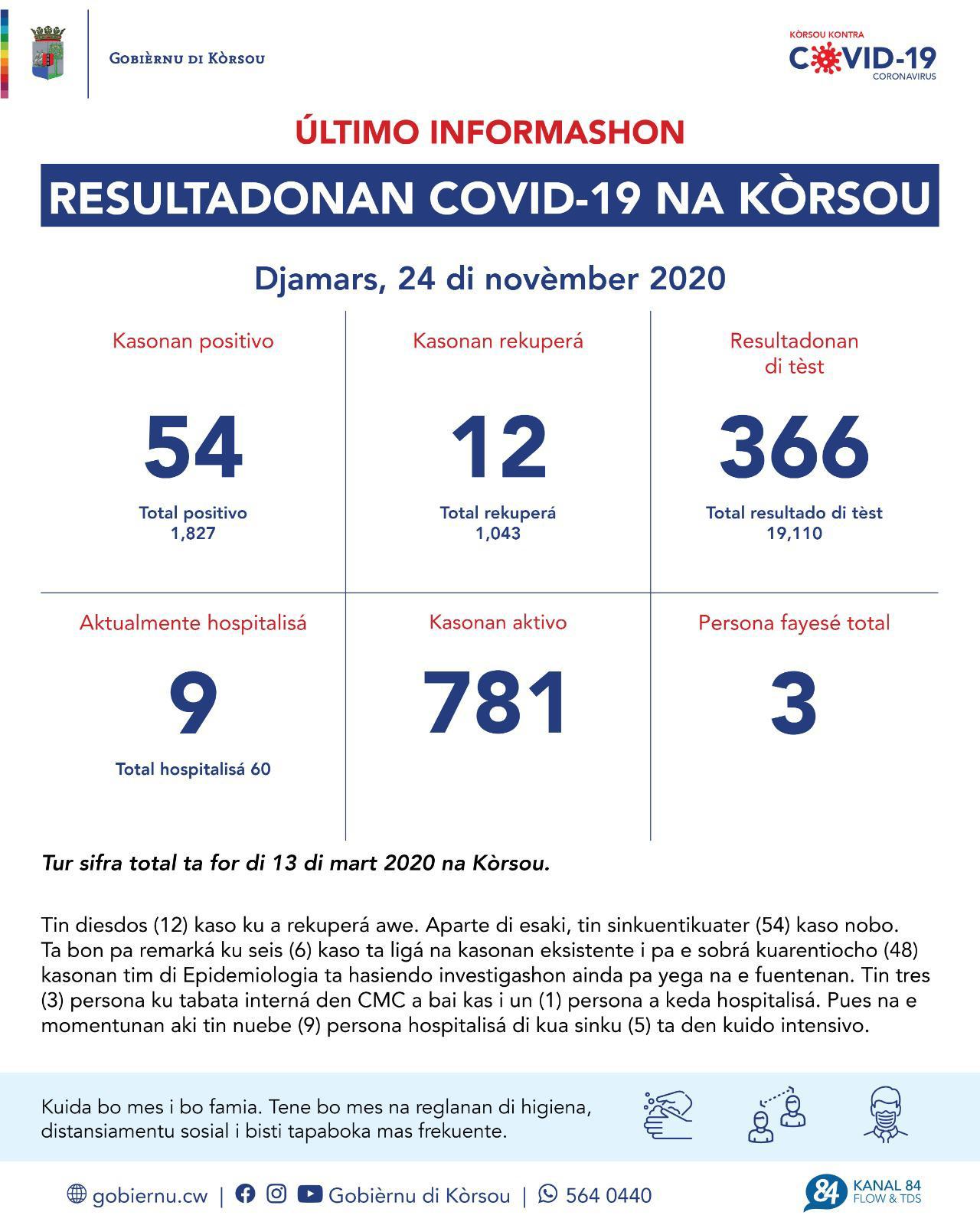 Djamars 24 di novèmber 2020 – Último informashon