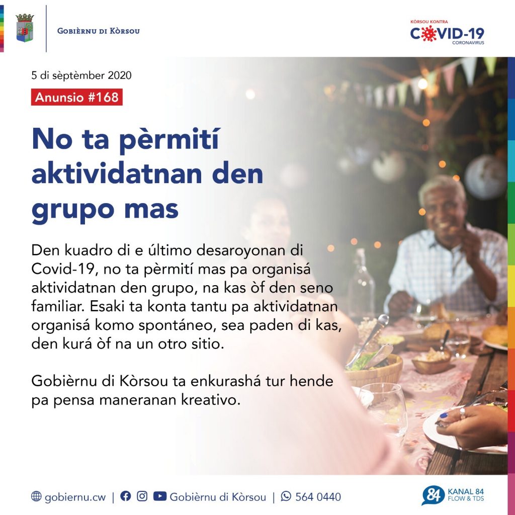 5 di Sèptèmber 2020 – No ta permití aktividatnan den grupo mas