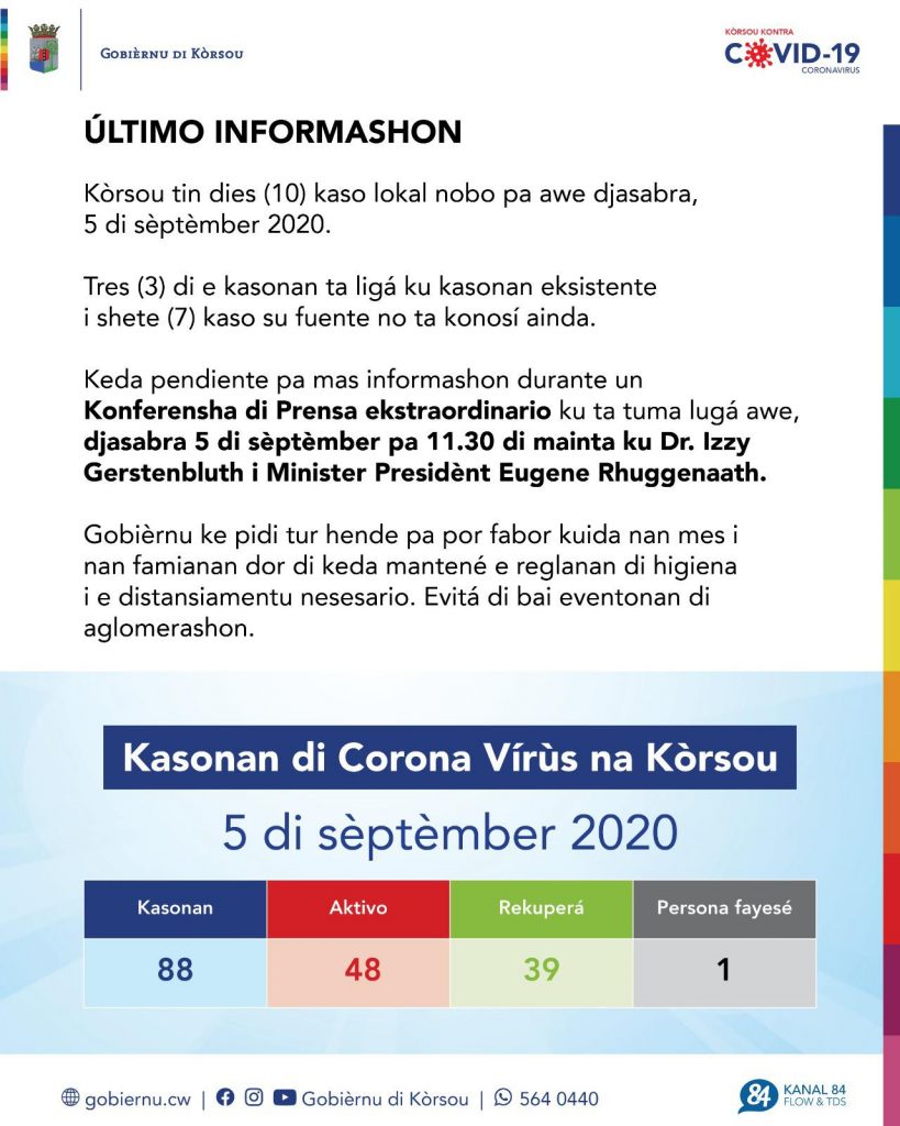 5 di Sèptèmber 2020 – Ahuste den instrukshonnan pa entiero I kasnan mortuorio