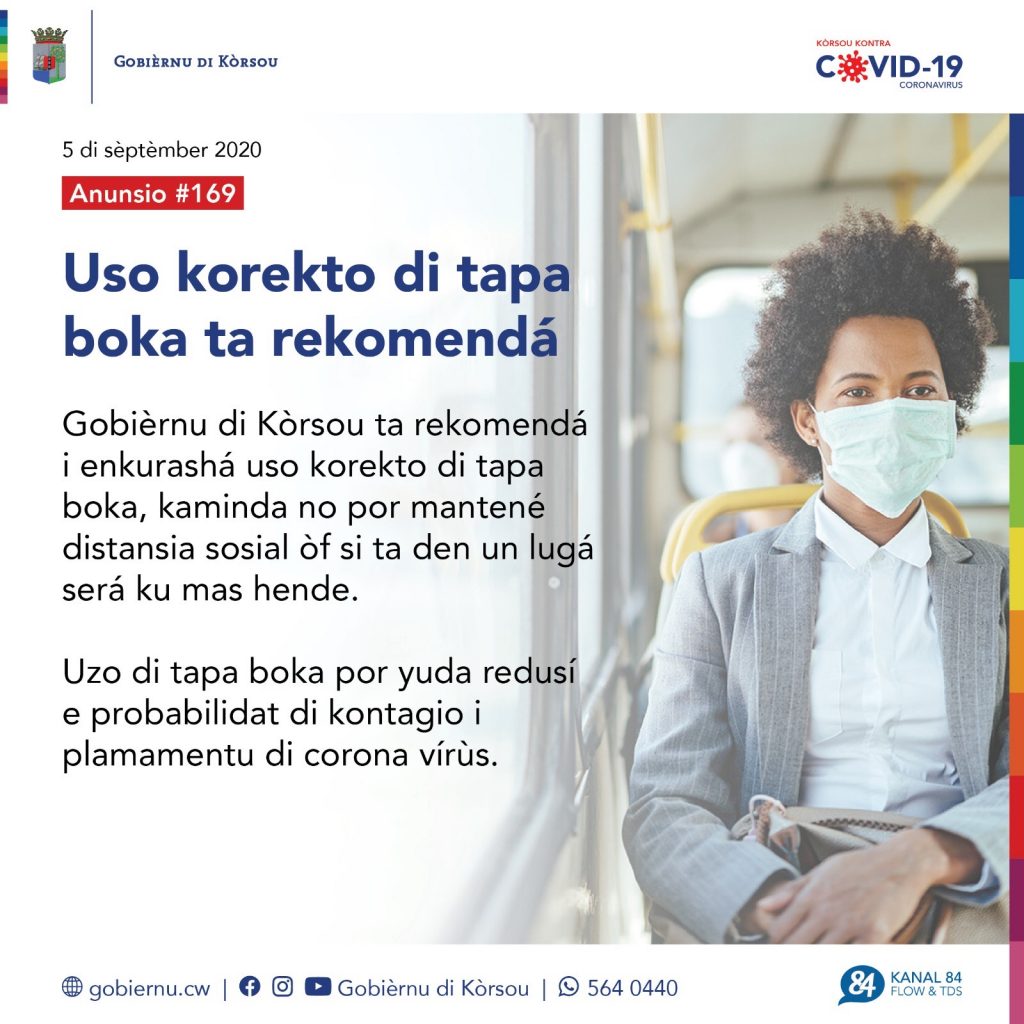 5 di Sèptèmber 2020 – Anunsio 169 – Uso korekto di tapa boka ta rekomendabel