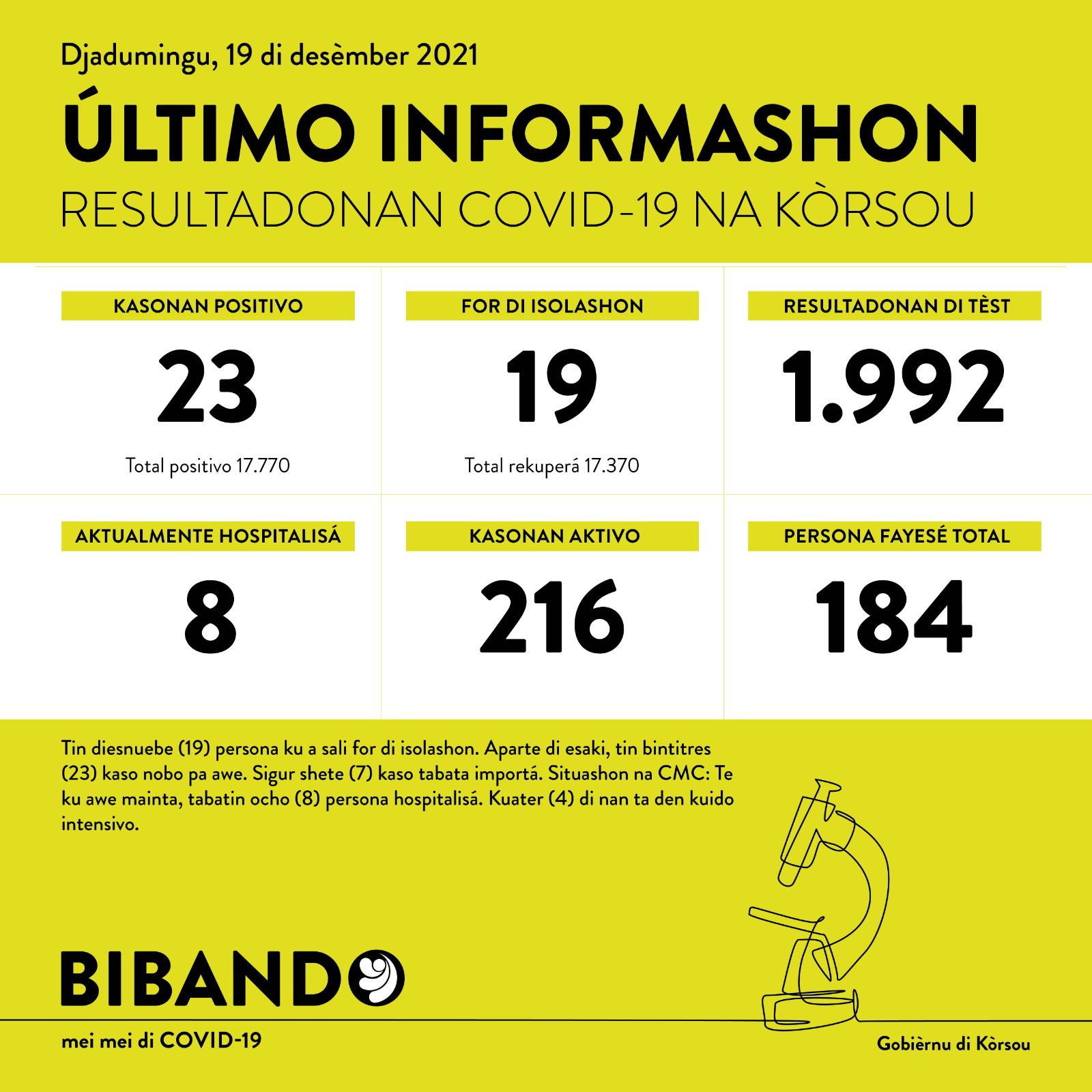 Djaluna 20 di desèmber 2021 – Resumen di Hospitalisashon