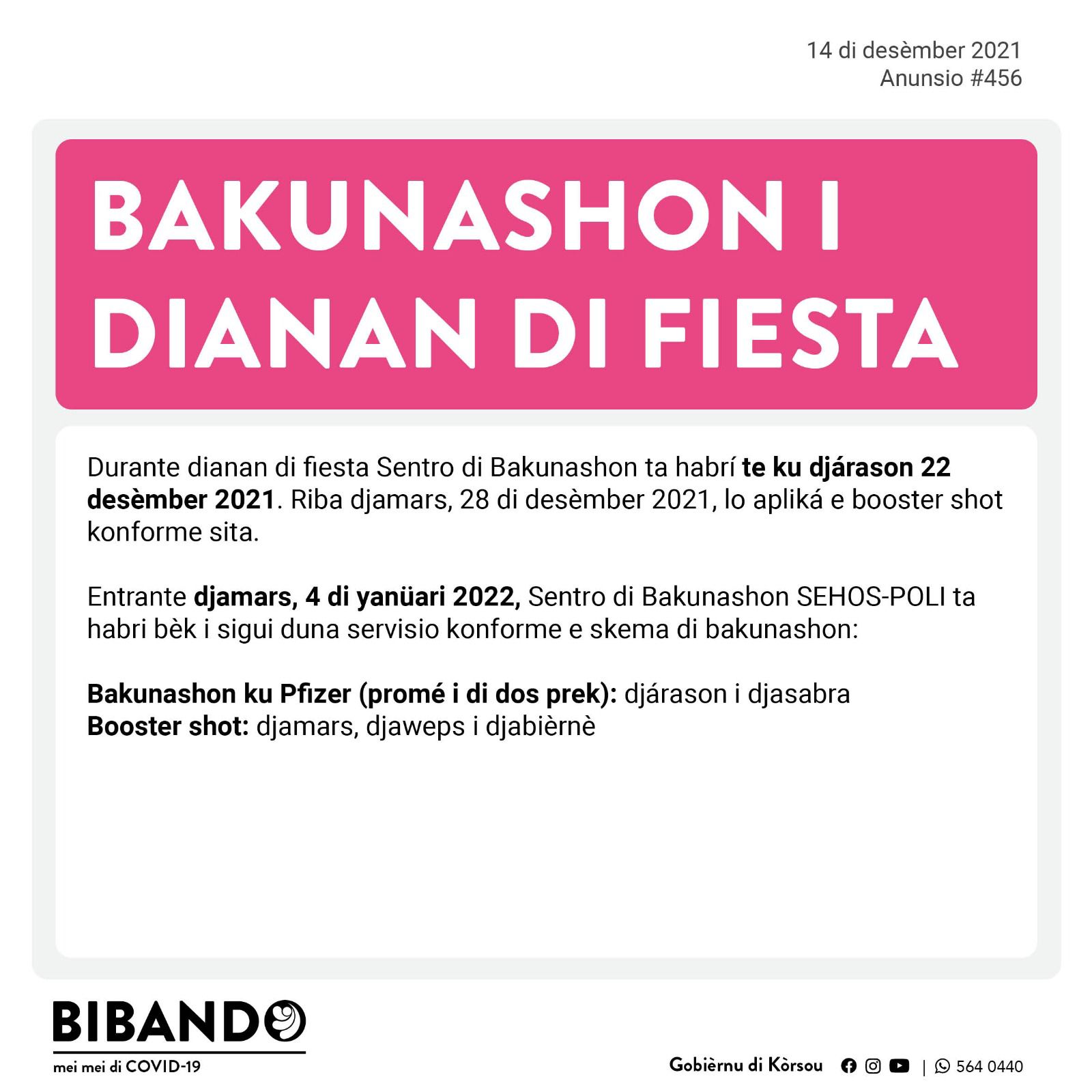 Djamars 14 di desèmber 2021 – Traha sita pa Booster shot