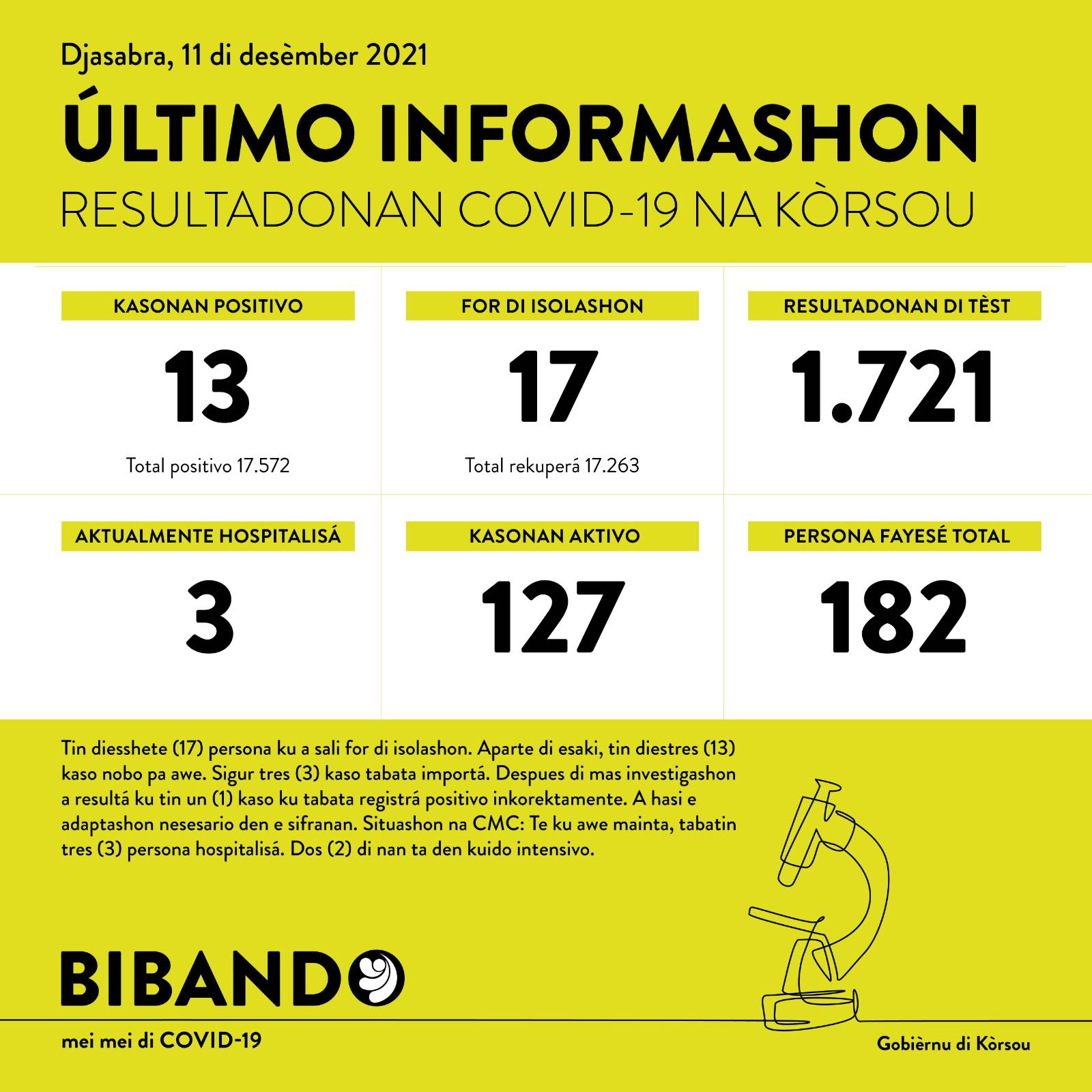 Djaluna 13 di desèmber 2021 – Resumen di Hospitalisashon