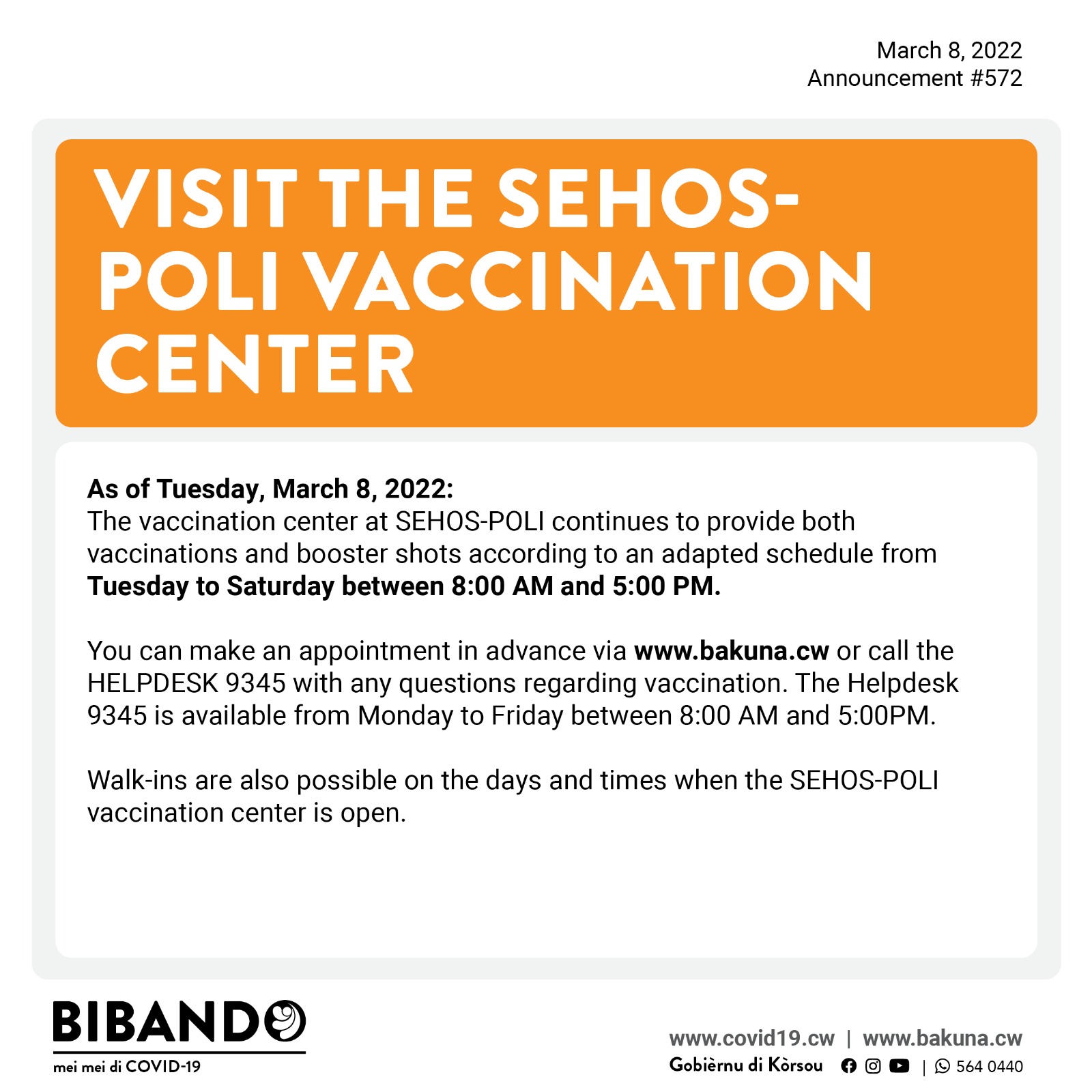 All current COVID-19 precautionary measures and Vaccination Announcements