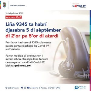 5 di sèptèmber 2020 – Liña 9345 ta habri djasabra 5 di September di 2or pa 5or di atardi