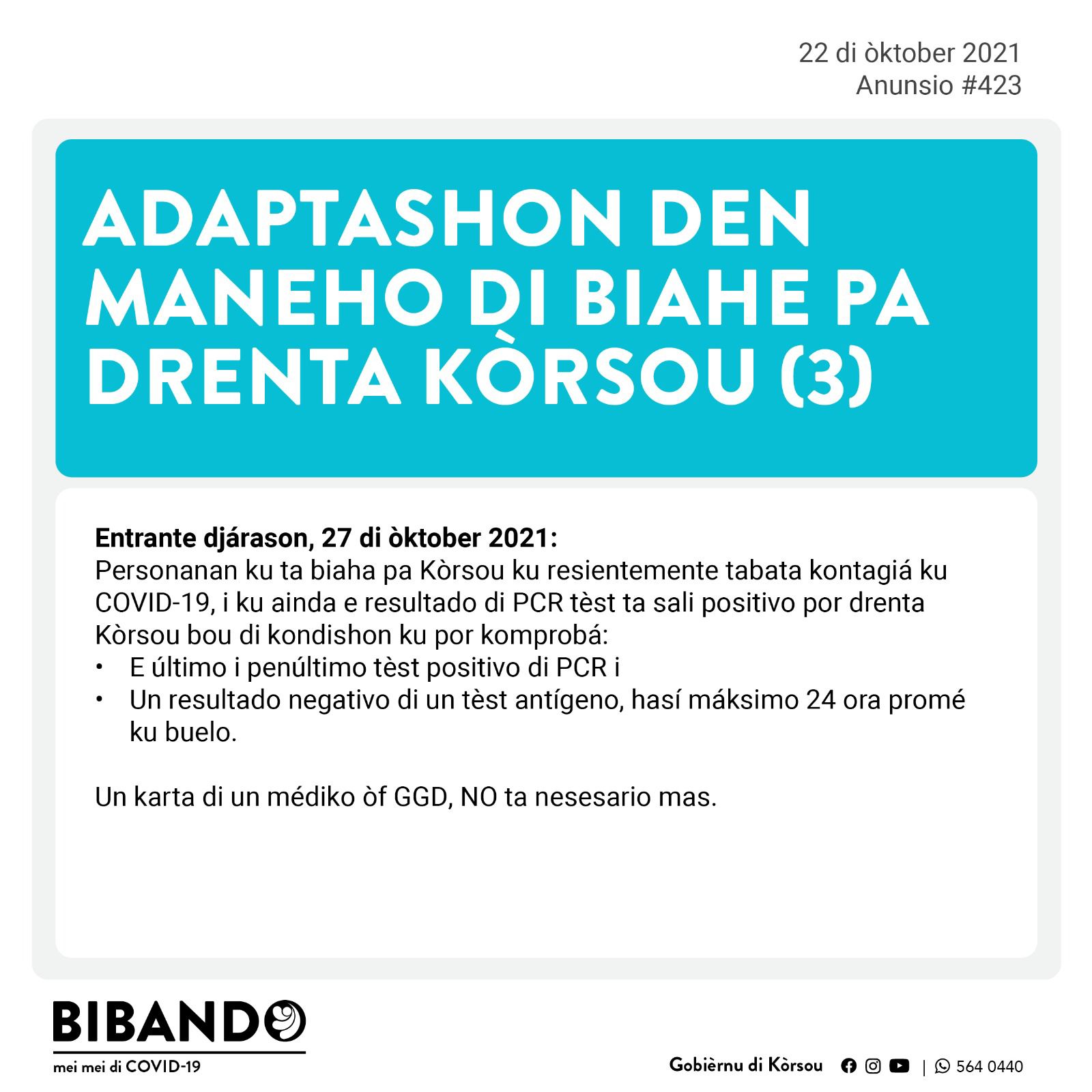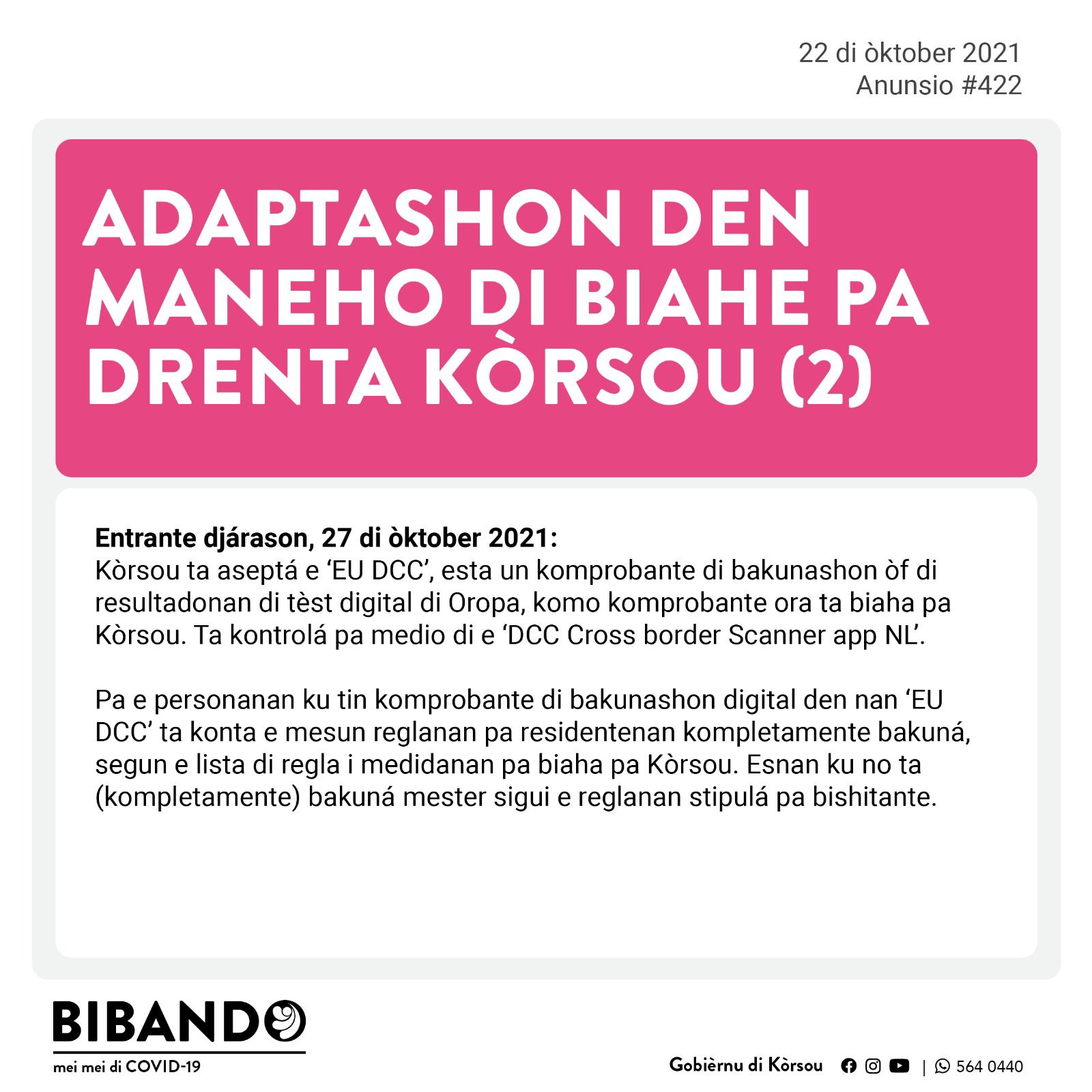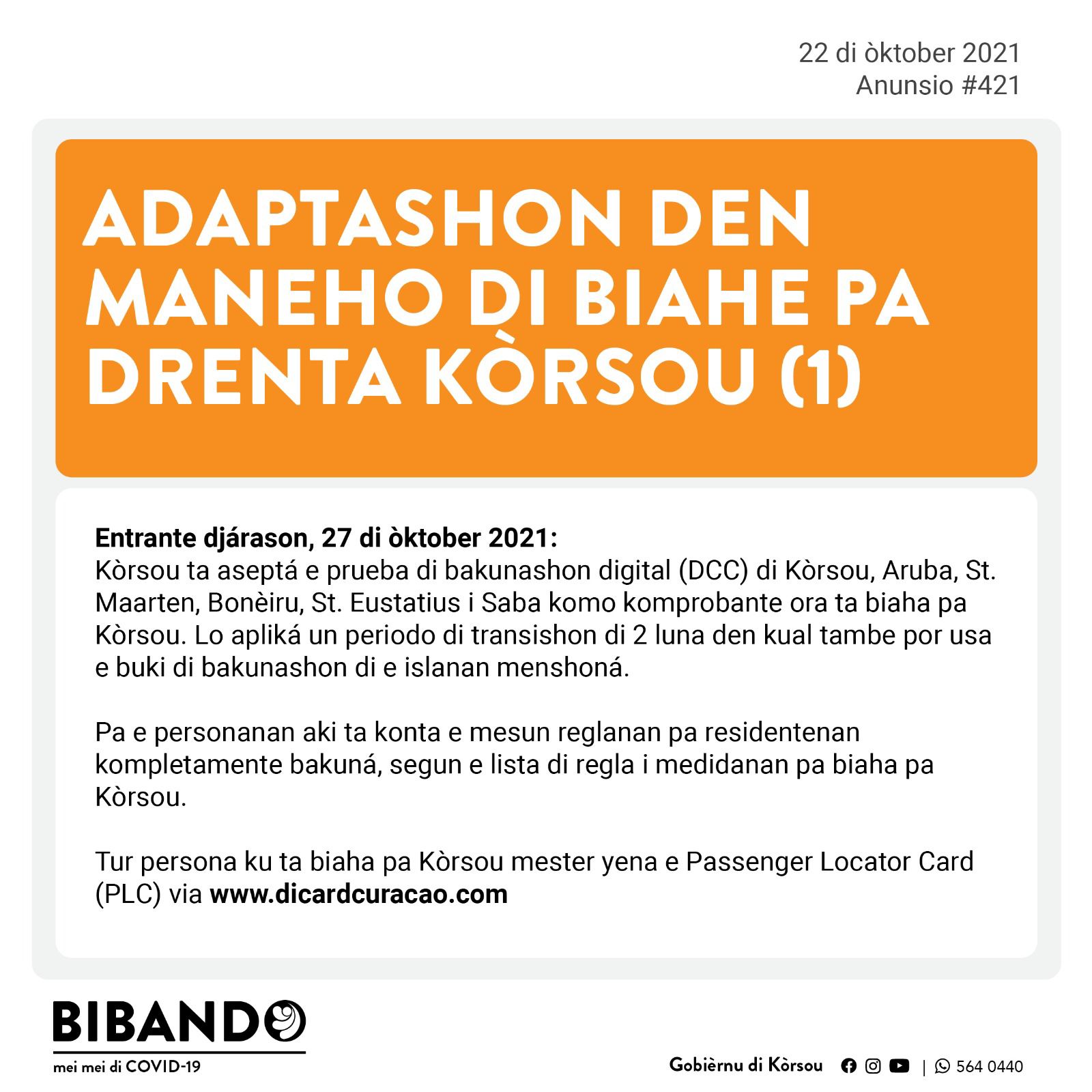 Djabièrnè 22 di òktober 2021 2021 – Anunsionan Públiko