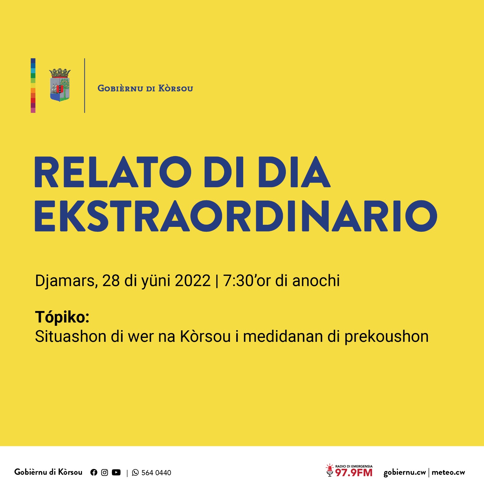 Djamars, 28 di yüni 2022 – Situashon di wer na Kòrsou i medidanan di prekoushon