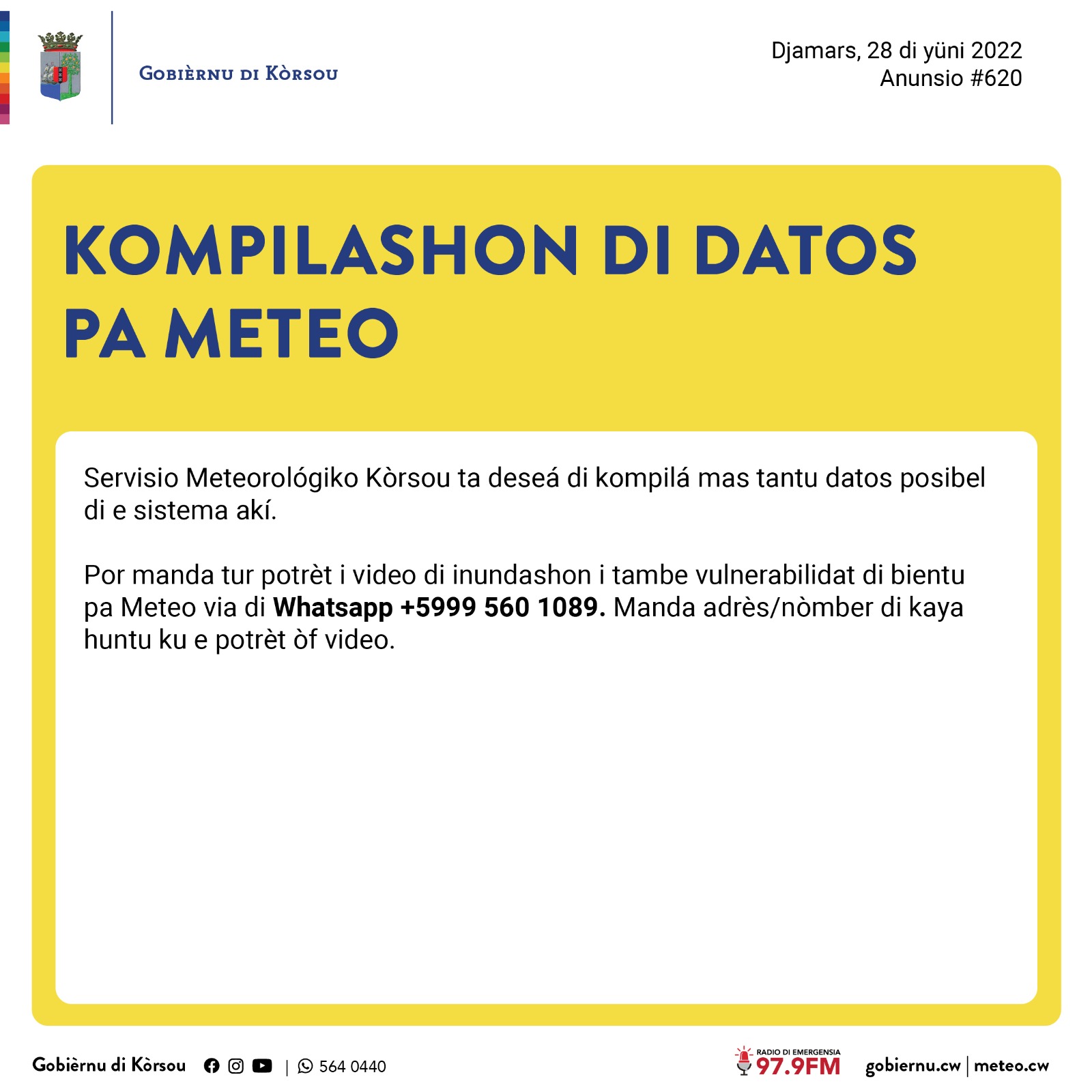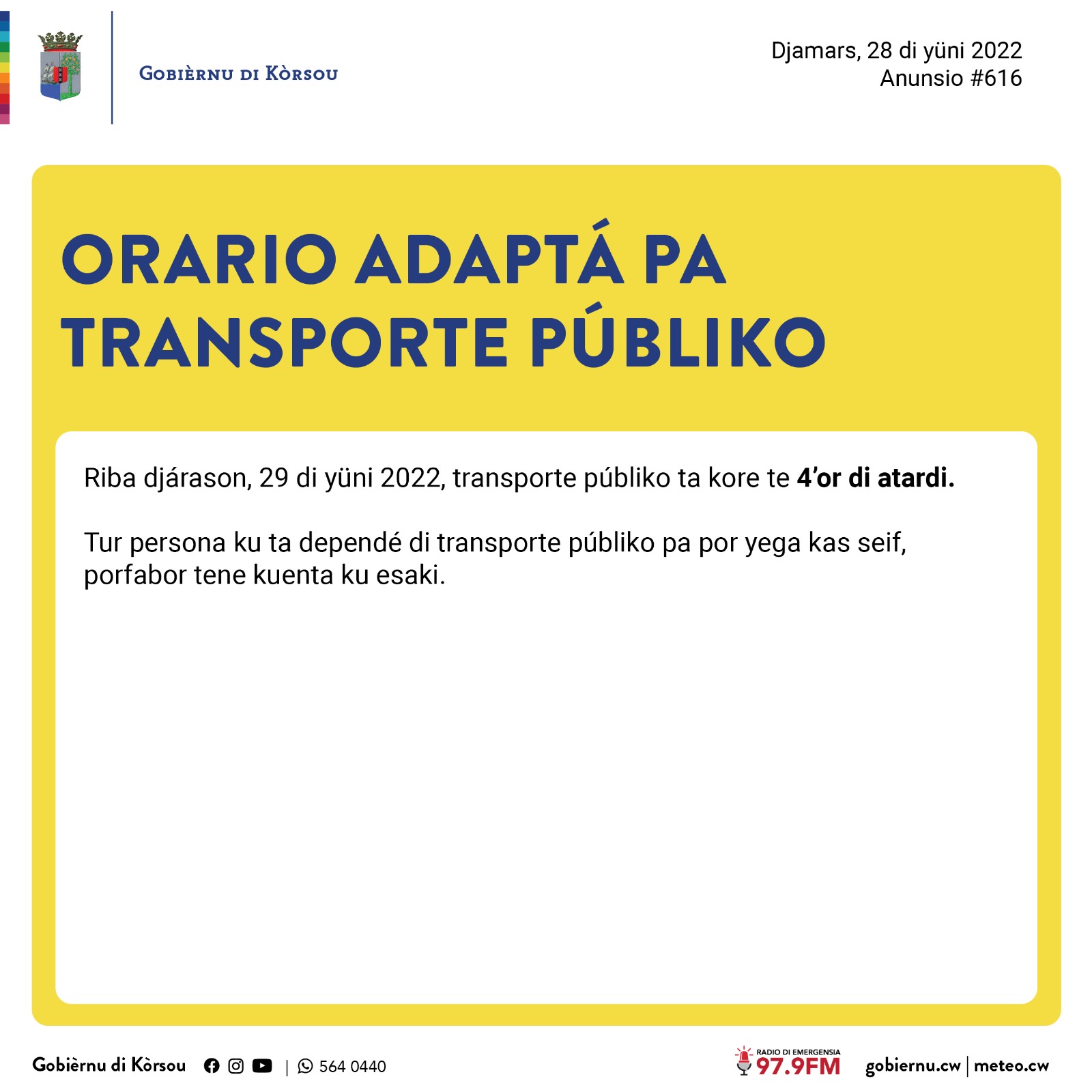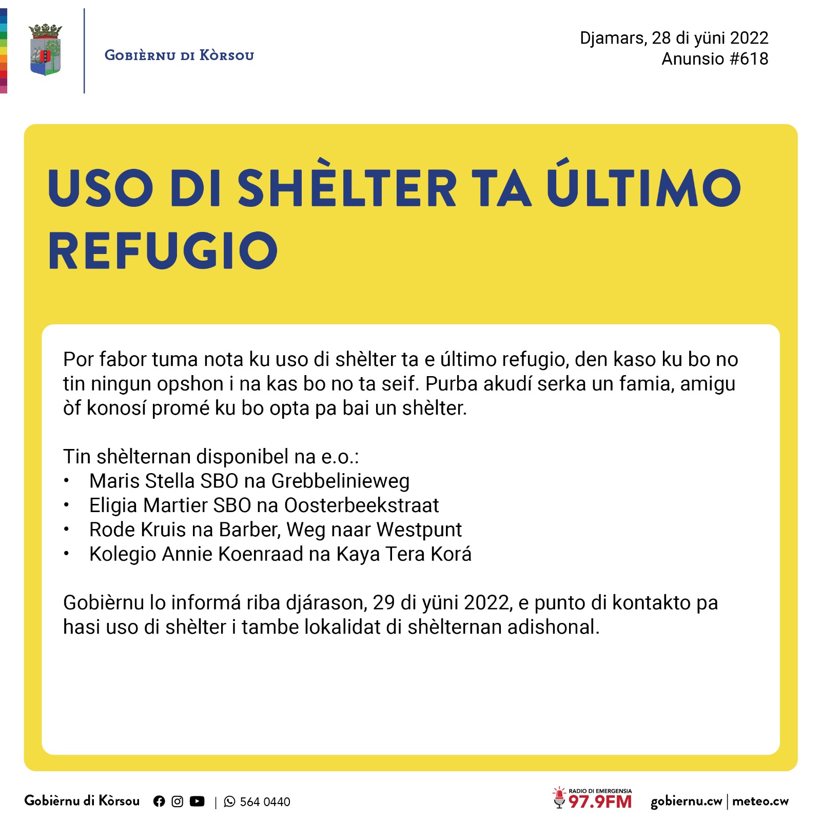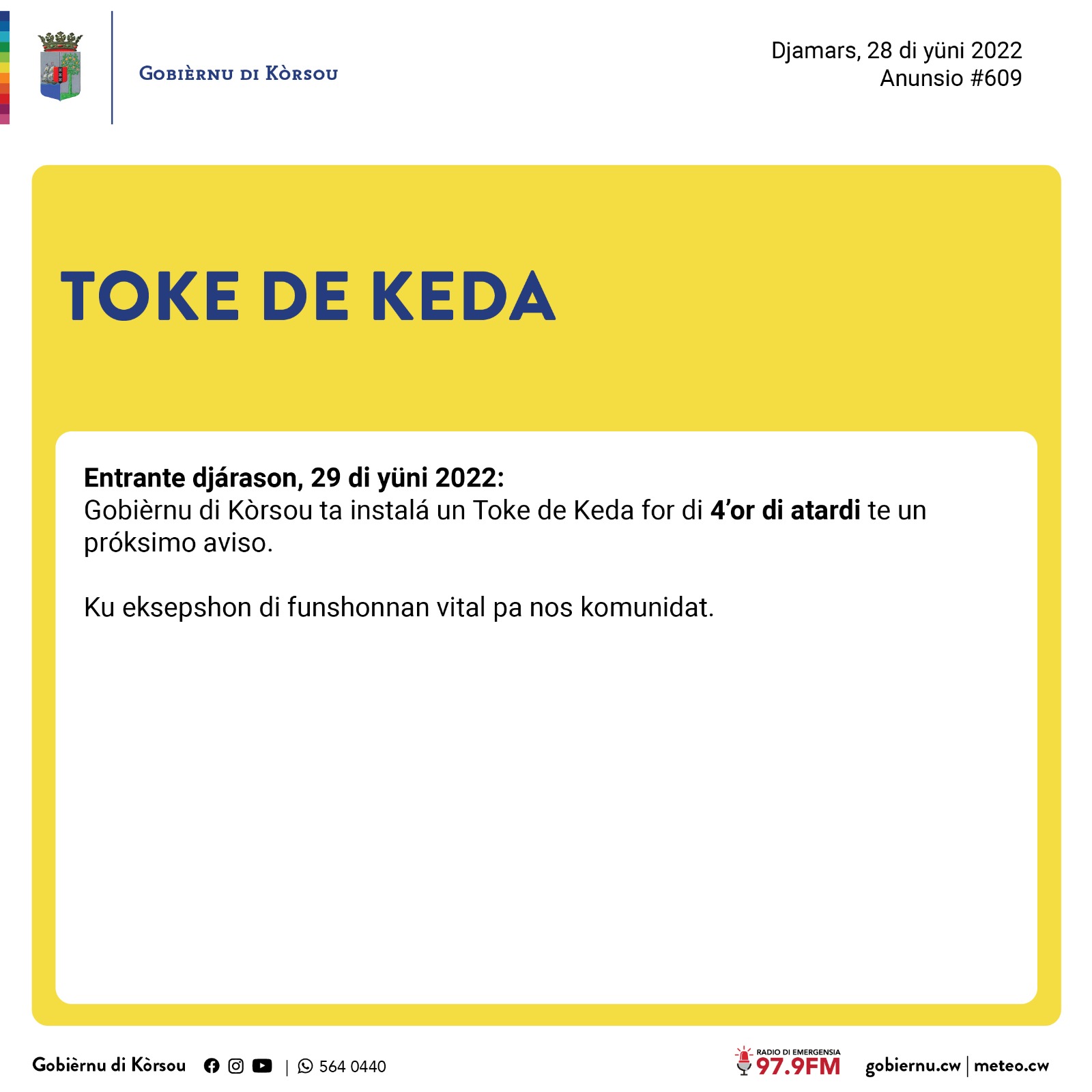 Sigui kanalnan ofisial di Gobièrnu di Kòrsou òf bo media preferí pa un siguiente ‘update’: djárason 29 di yüni 2022 pa 11:30’or di mainta.