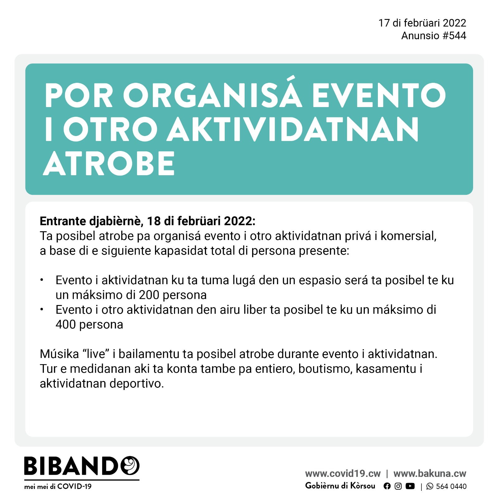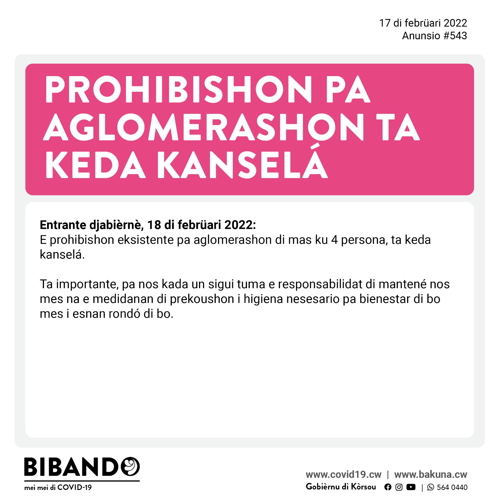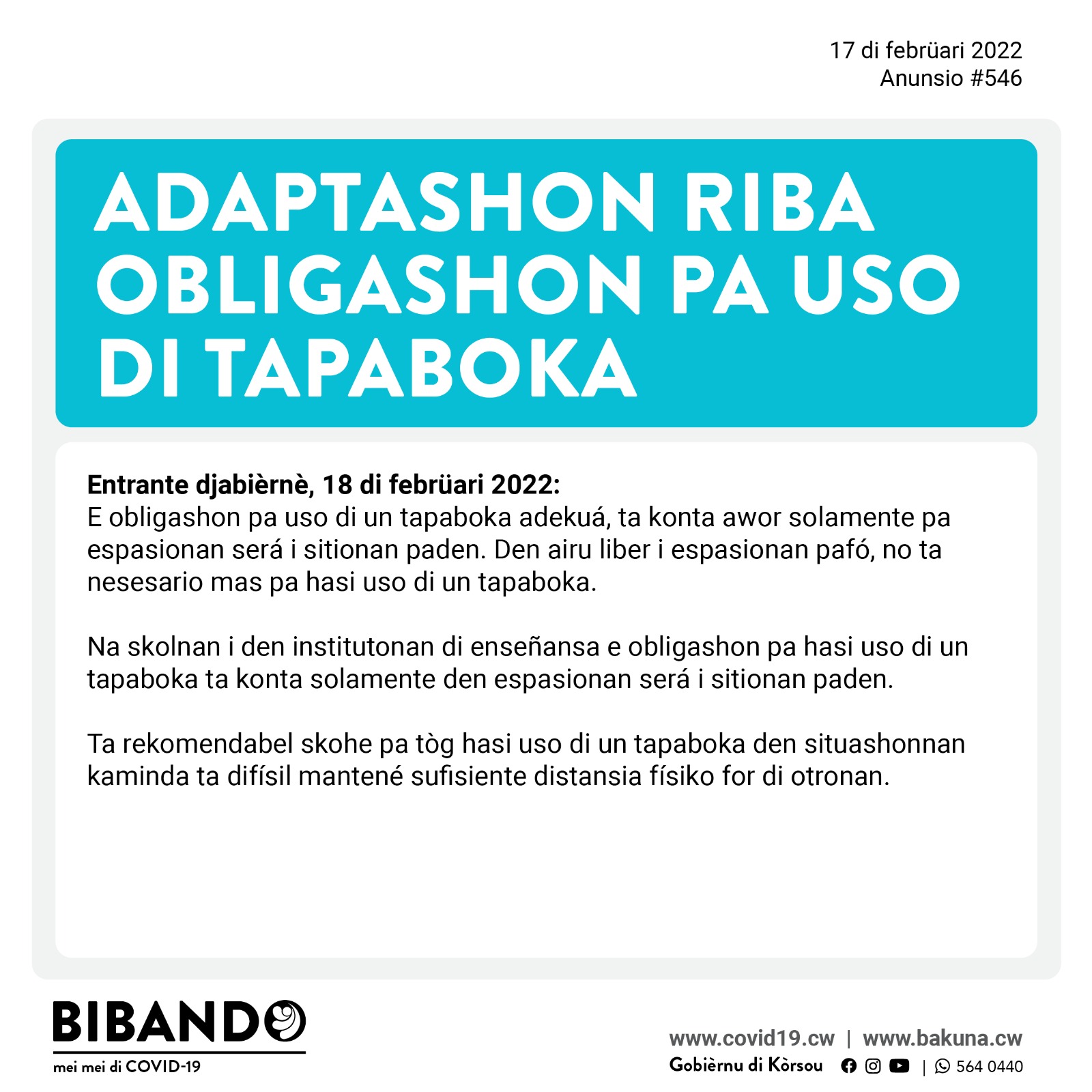 Djaweps 17 di febrüari 2022 – Suavisashon di Medidanan