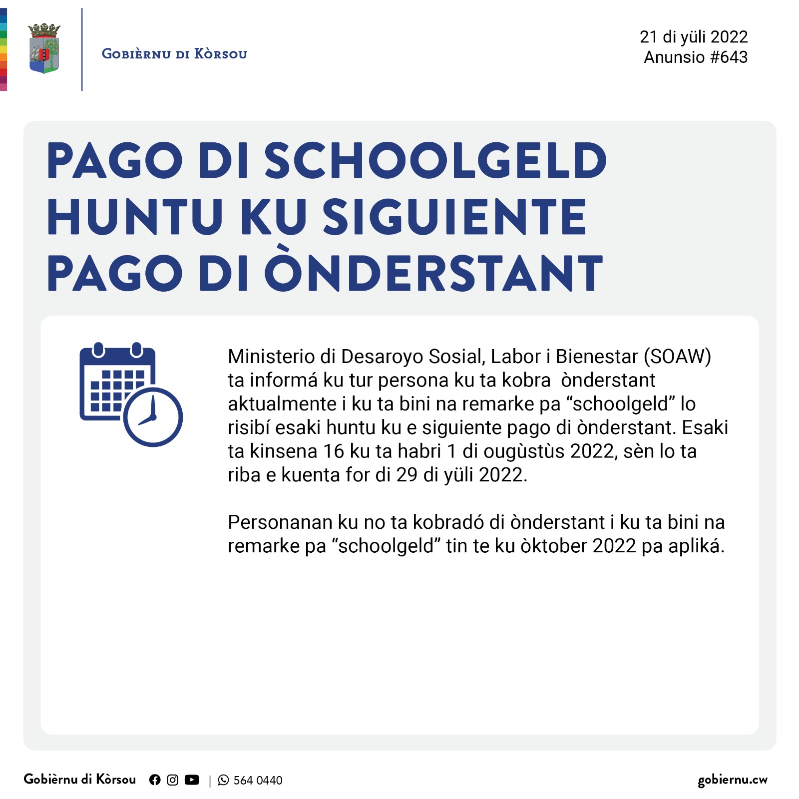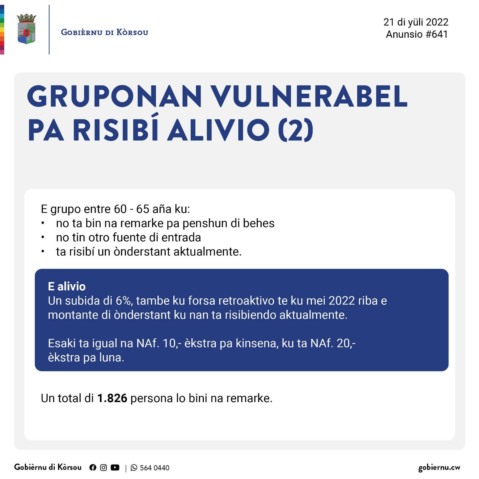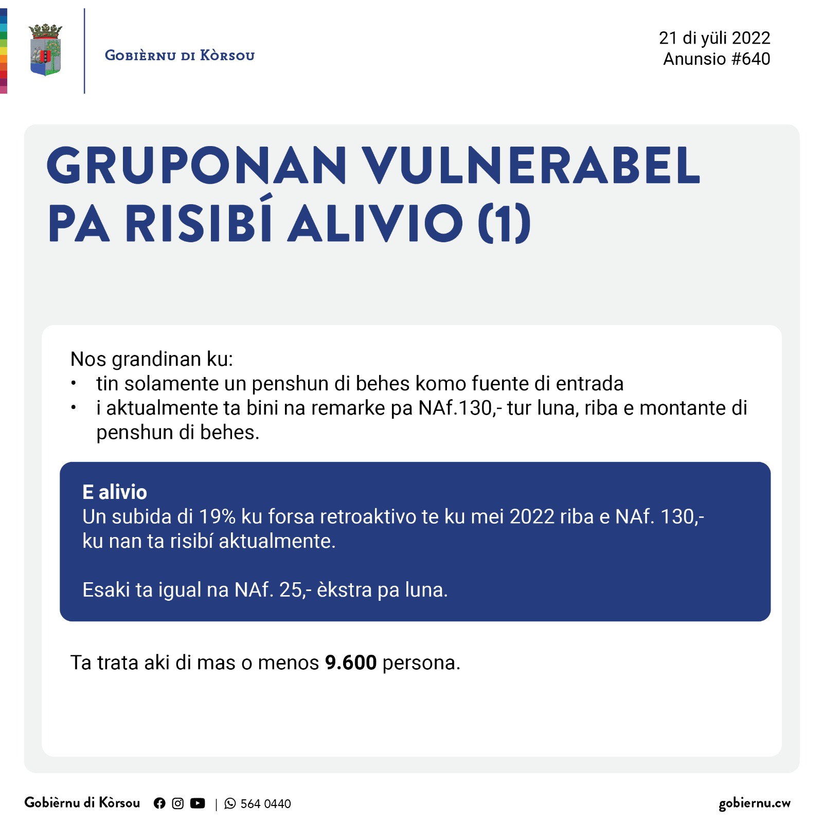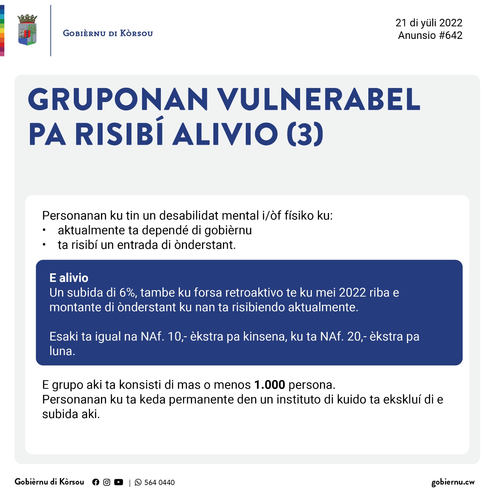 Djaweps 21 di yüli 2022 – Anunsionan di SOAW pa gruponan vulnerabel