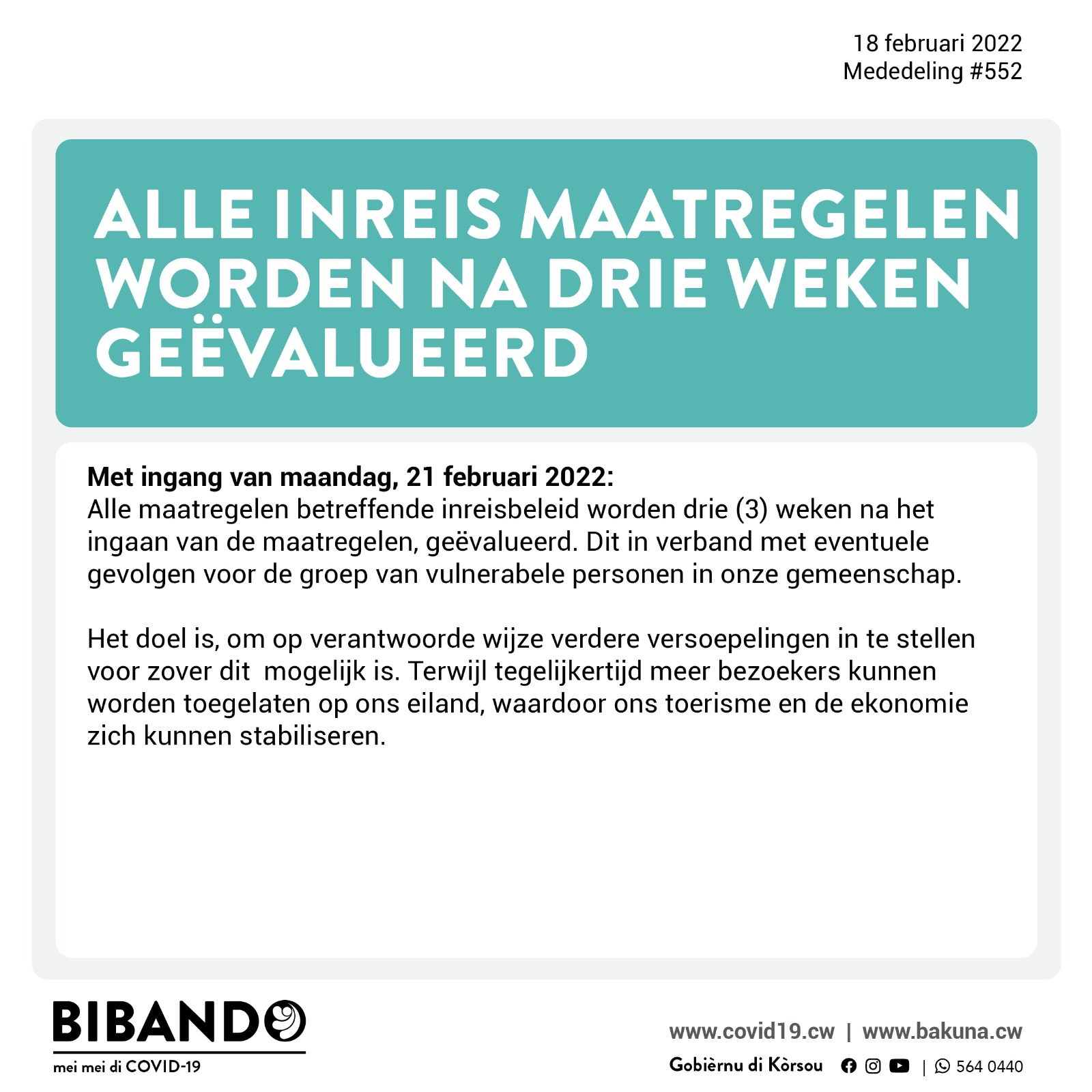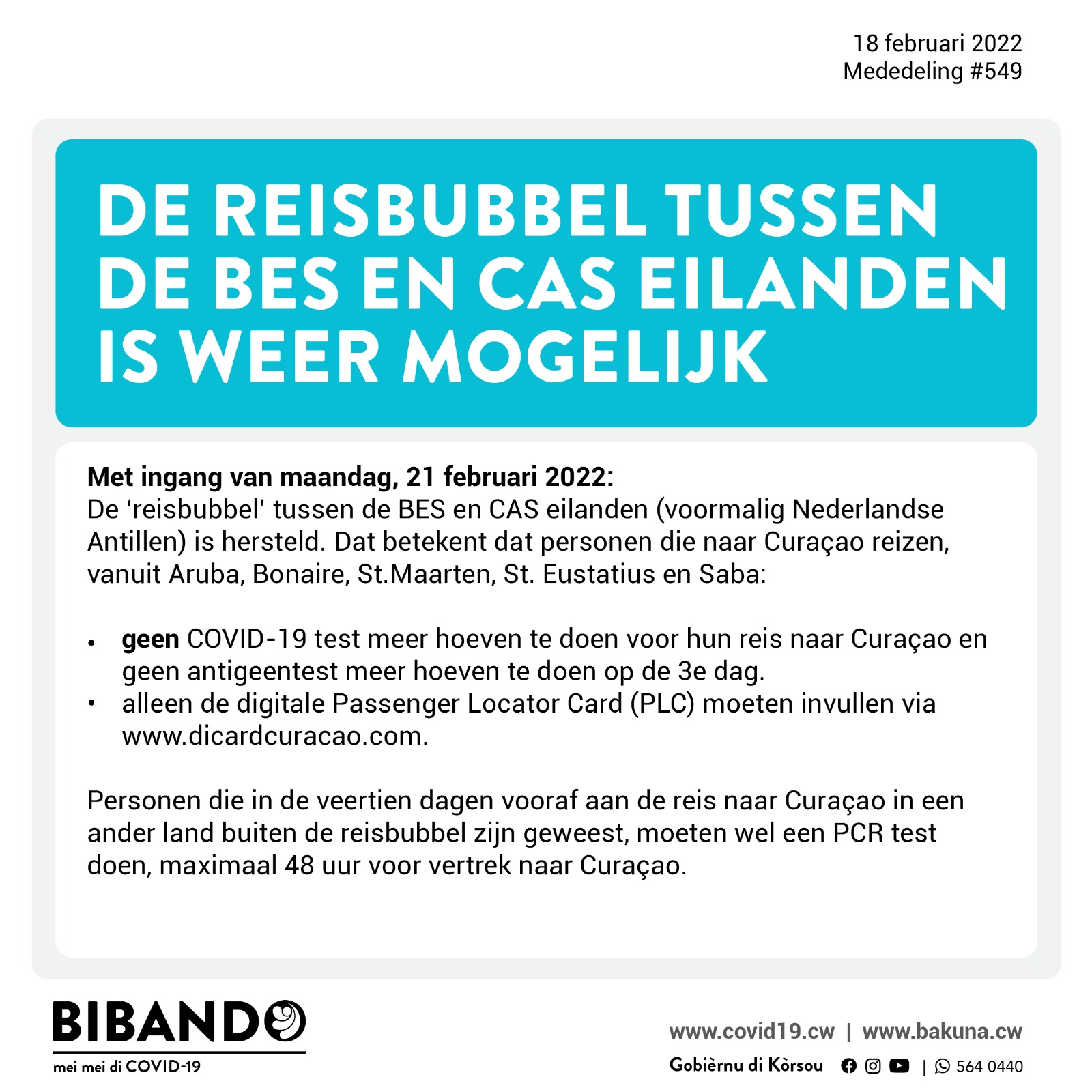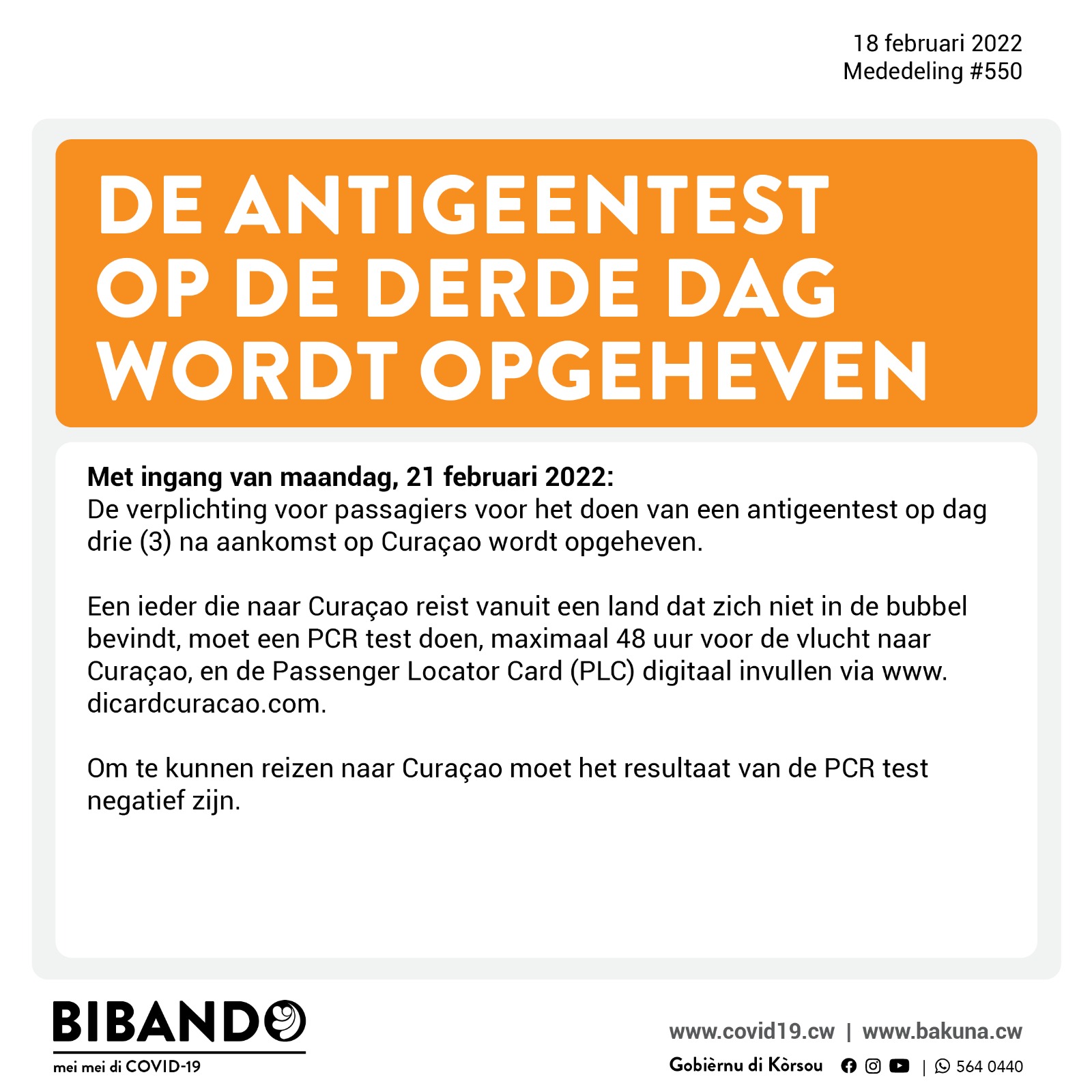 Vrijdag 18 februari 2022 – Nieuwe inreisbeleid Curaçao