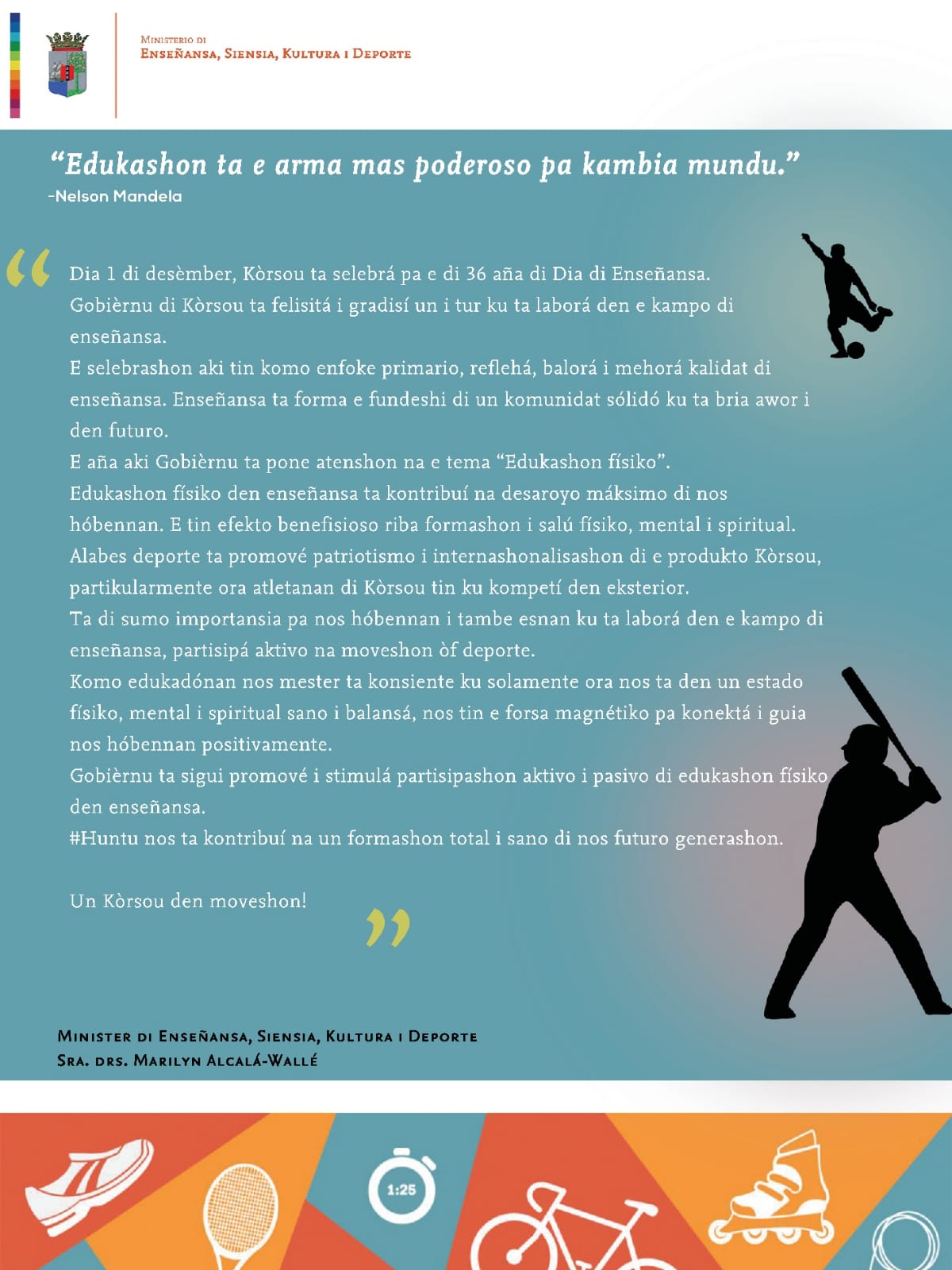 Geplaatst op 01 December 2018 dor di Ministerio Enseñansa, Siensia, Kultura & Deporte