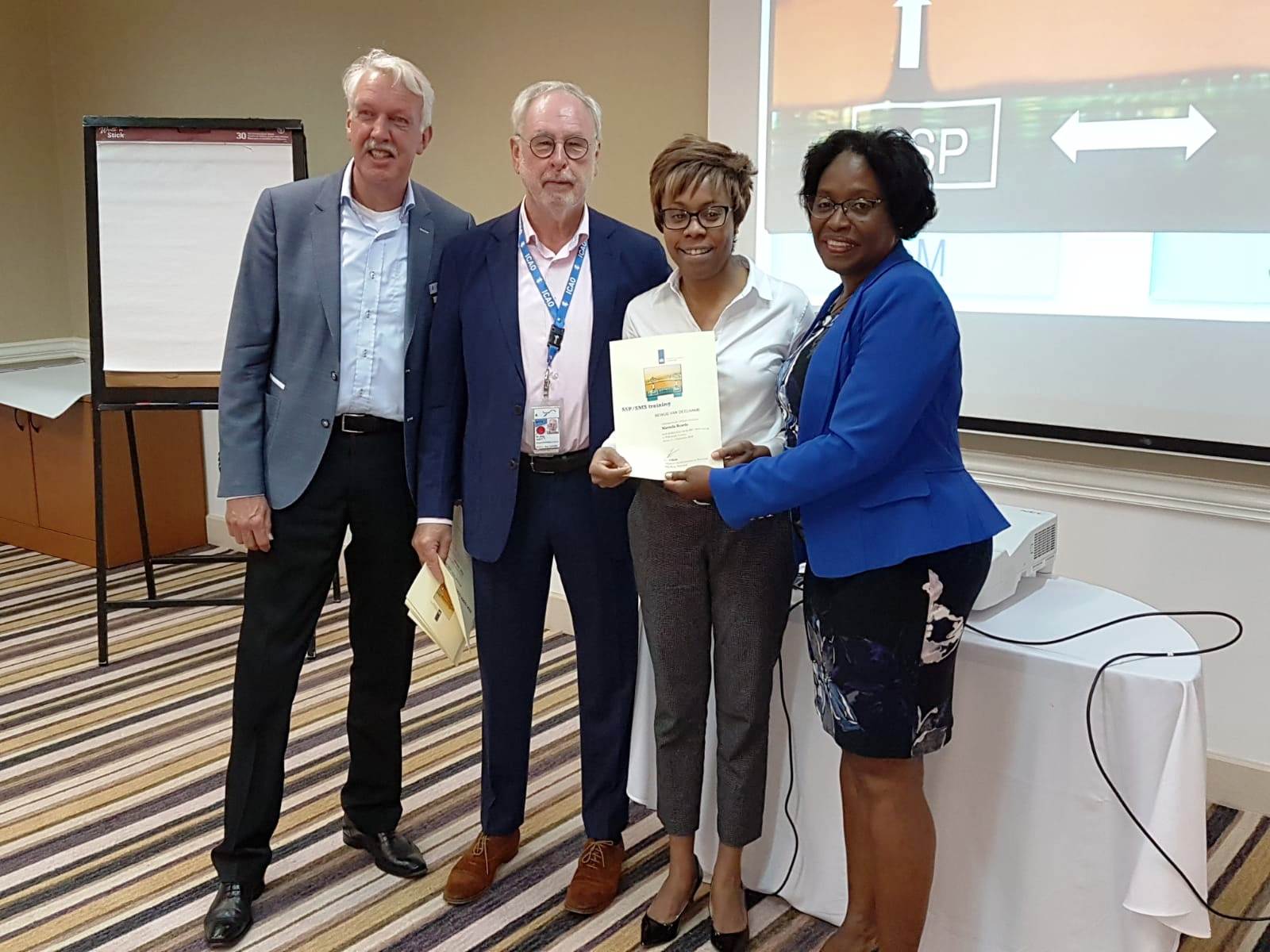 Minister di Tráfiko, Transporte i Planifikashon Urbano (VVRP) Sra. Zita Jesus-Leito a entrega sertifikado na partisipantenan na final di e workshop.