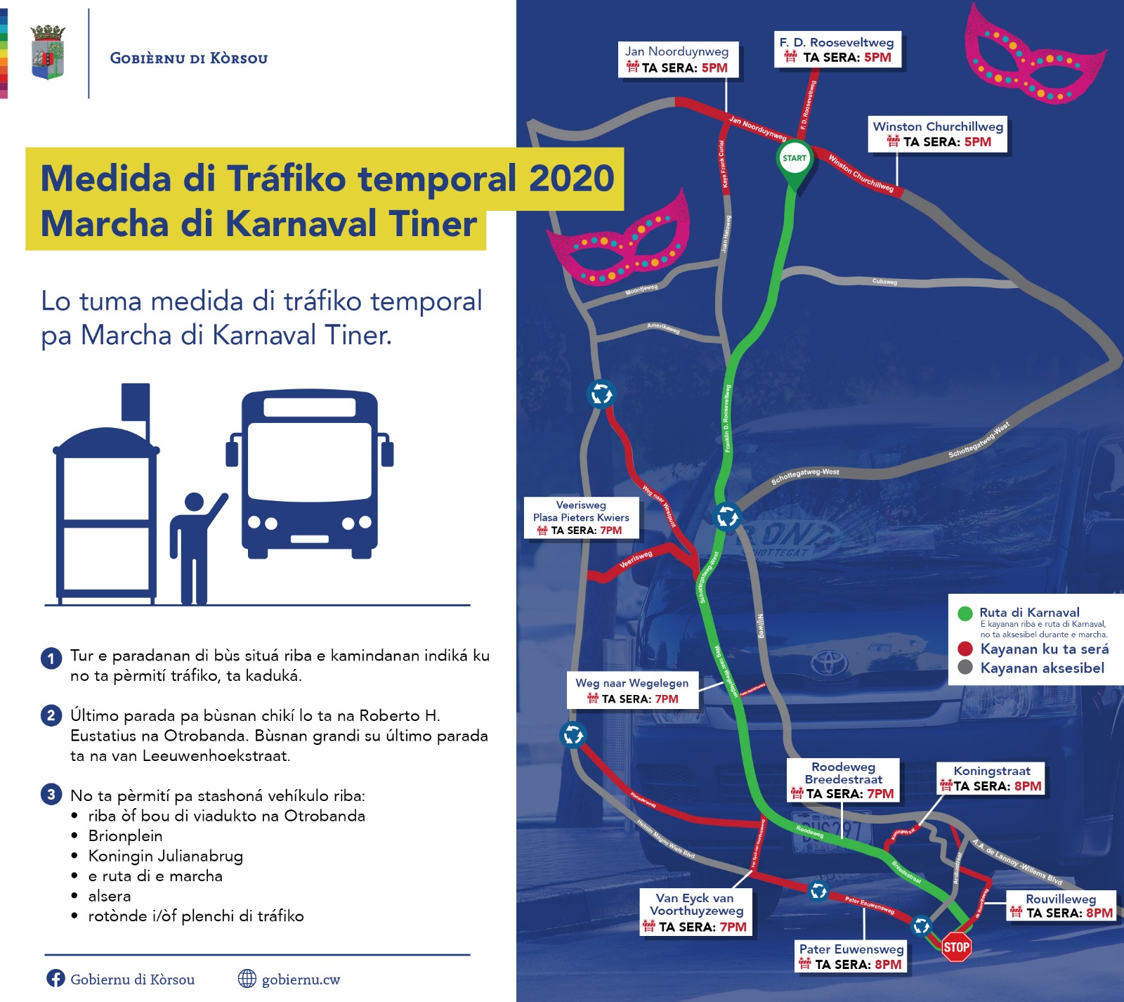 3. Medidanan di tráfiko temporal en konekshon ku transporte públiko pa Marcha di Karnaval Hubenil 2020
