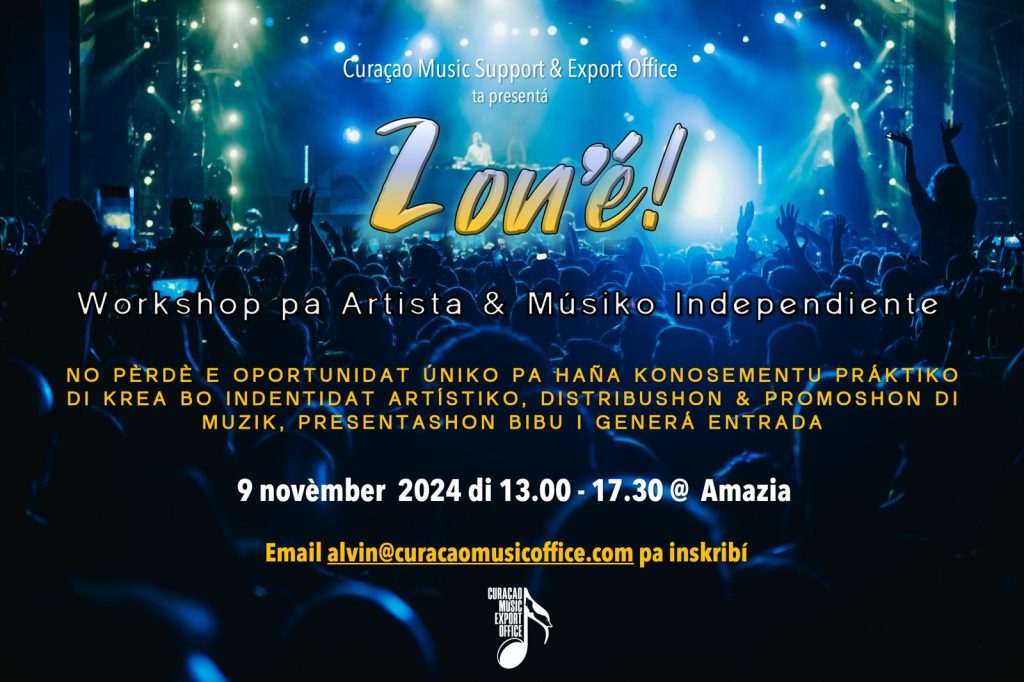 Djasabra awor 9 di novèmber 2024, Curaçao Music Export Office ta organisá un kurso yamá “Zoné”, ku ta ofresé e oportunidat na esnan interesá den internashonalisá nan músika i talento, pa partisipá. E kurso ta grátis i ta tuma lugá di 1’or di mèrdia pa 6’or di atardi na Amazia.
