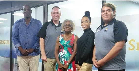 Durante e kombersashon tabata tei presente Vise presidente Sr. Kevin Halle i e direktor asistente di atmishon kompañá pa un (studiante) Wiryoka Monte. Wiryoka Monte ta un studiante yu di Kòrsou ku a hasi su bachelor na Wayne State College i awor ta terminando ku su master online.