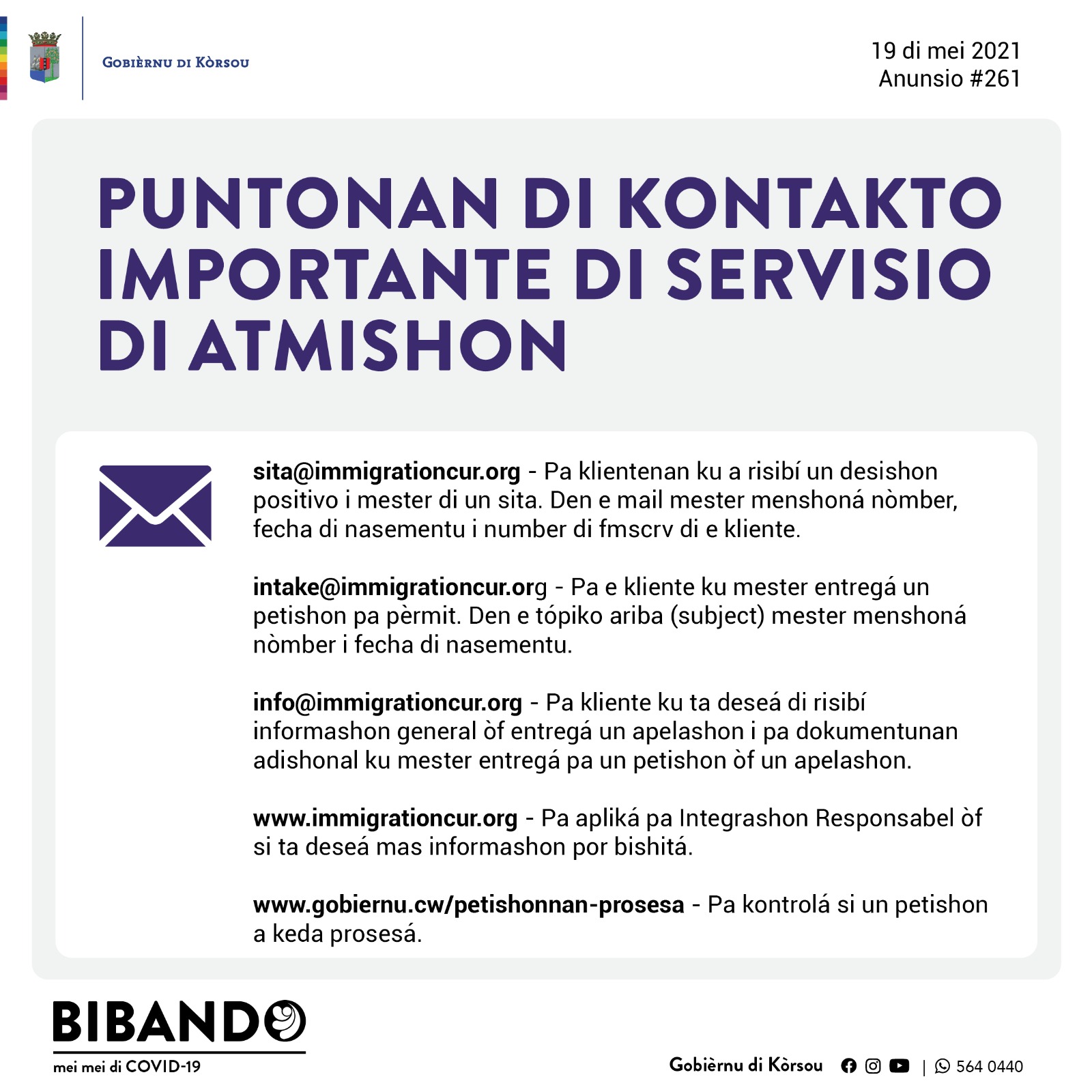 Riba www.immigrationcur.org tin tur informashon importante na papiamentu, hulandes, ingles i spañó. Por haña, entre otro, informashon tokante e proseso, e rekisitonan general i spesífiko pa kada meta di estadia i tambe informashon tokante ken ta bini na remarke. Personanan ku ta bini na remarke ta personanan ku no a nase den Reino ni tampoko na Merka, ta permanesiendo di forma indokumentá na Kòrsou, a yega nos isla di forma legal i promé ku òf riba 13 di mart 2020.