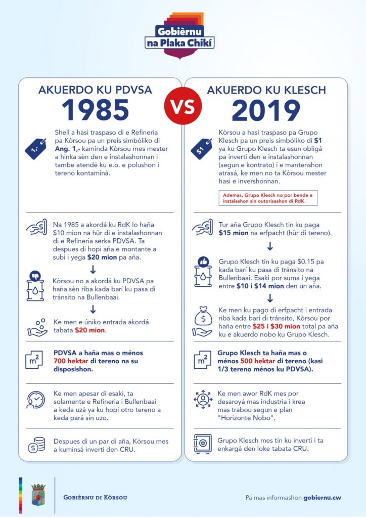 Pa un kompania ku tin ku hasi invershon di hopi mion dòlar, e mester por haña su invershon bèk durante un kantidat haltu di aña ku e tin e propiedat. P’esei tabata esenshal sera un kontrato di hopi aña ku Grupo Klesch pa e invertí obligatoriamente den e instalashonnan manera RdK a palabrá kuné pa medio di un kontrato.