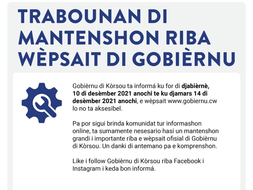 Willemstad – Pa por sigui brinda komunidat un bon eksperensia online, ta sumamente nesesario pa hasi un mantenshon intensivo riba e wèpsait ofisial di Gobièrnu di […]