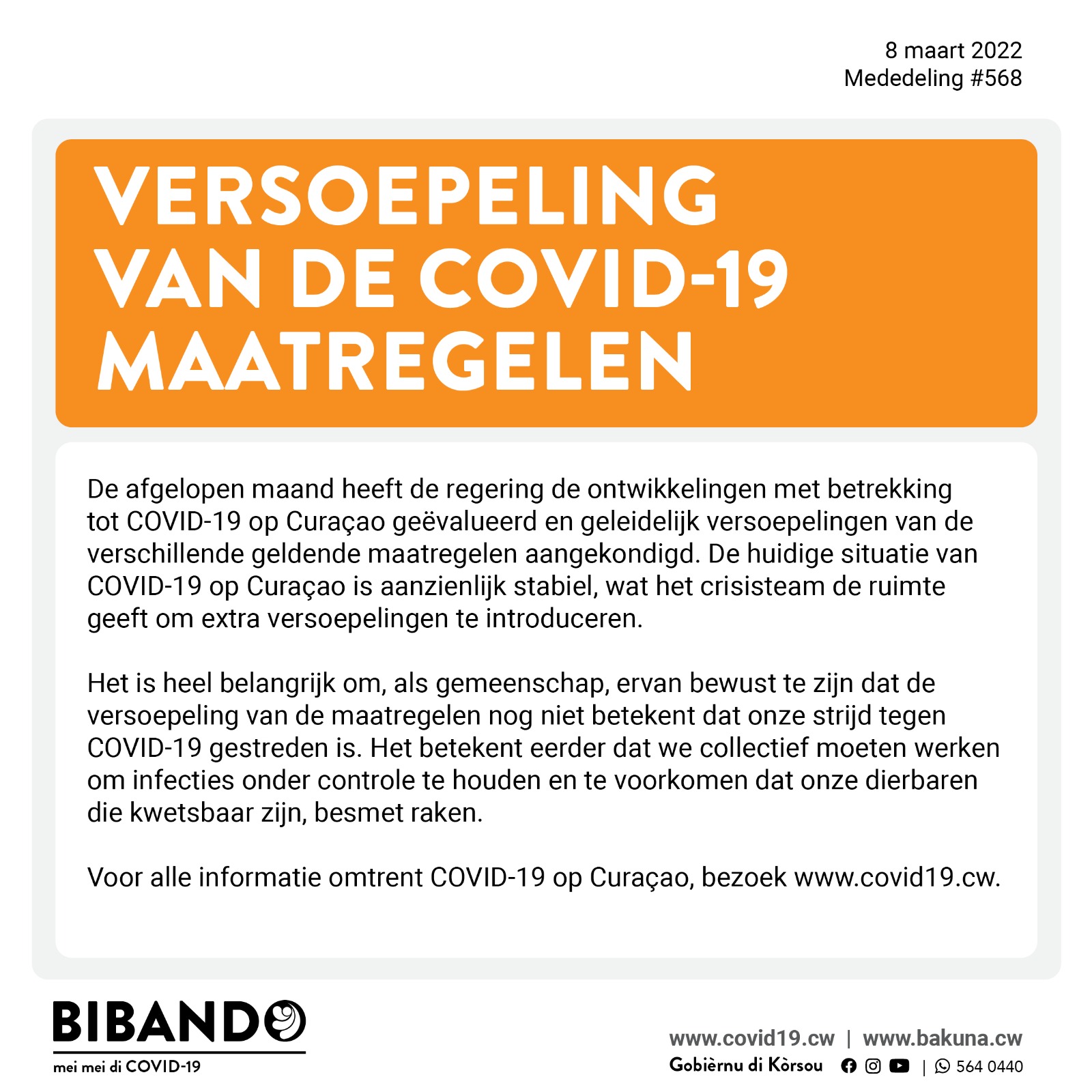 Dinsdag 8 maart 2022 – Versoepeling van de COVID-19 maatregelen