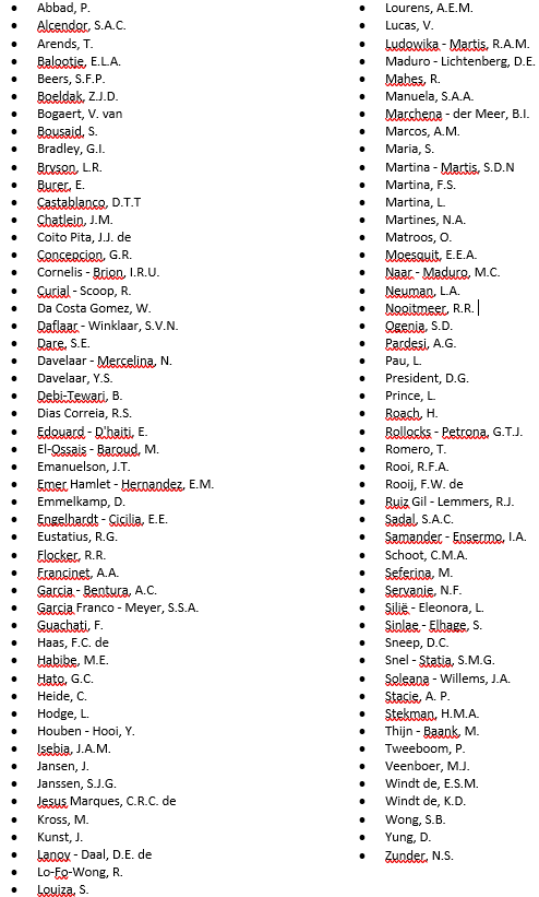 Bij exploot van dertigste januari 2026 waarvan afschrift is gelaten aan de Edelachtbare Officier van Justitie bij Het Gerecht in Eerste Aanleg van Curaçao, die het oorspronkelijk voor “Gezien” heeft getekend, heb ik, SONALIE RENATA VALENTINA ROLLINS, deurwaarder voor burgerlijke zaken bij Het Gemeenschappelijk Hof van Justitie van Aruba, Curaçao en Sint Maarten en van Bonaire, Sint Eustatius en Saba en bij Het Gerecht in Eerste Aanleg van Curaçao, wonende op Curaçao en kantoorhoudende aan de Kaya Sayet 3 36, gevolg gevend aan de beschikking van 22 januari 2026 van de E.A. Rechter in het voormeld Gerecht, de gezamelijke erfgenamen van wijlen Pascual Augustin Leonard James, overleden op 31 januari 2004 te Curaçao: 1. RONALD RICHARD JAMES, 2. JACQUELINE LINETTE JAMES en 3. MONIQUE MYRTHLINE JAMES, allen zonder bekende woon- en of verblijfplaats op Curaçao of elders, OPGEROEPEN om op maandag 18 mei 2026 des voormiddag om 09:30 uur ter terechtzitting te verschijnen ten Raadhuis “Kas di Korte” aan het adres Emancipatie Boulevard Dominico “Don” Martina # 18 op Curaçao voor de E.A. Rechter, teneinde op de door YVETTE EUNICE JAMES., wonende in Nederland tegen hen ingestelde vordering te antwoorden.