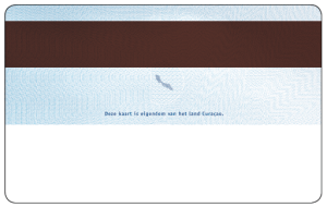 d. irisdruk (Rainbow Print) verwerkt in de tekst “IDENTITEITSKAART CURAÇAO”;