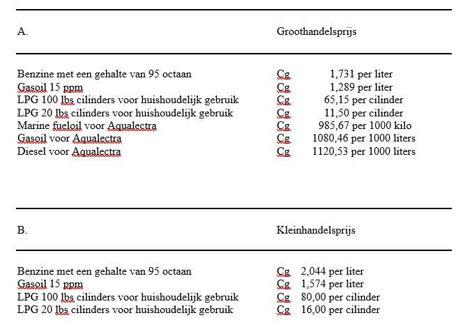 | 01-07-2025 | n.v.t. | n.v.t | art. 3 van de Prijzenbeschikking aardolieproducten Curaçao mei 1982 | P.B. 2025, no. 89 | n.v.t. |
