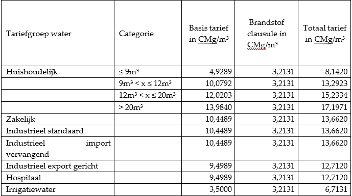 In de bijlage behorende bij artikel 2 worden de navolgende tarieven gewijzigd als volgt: