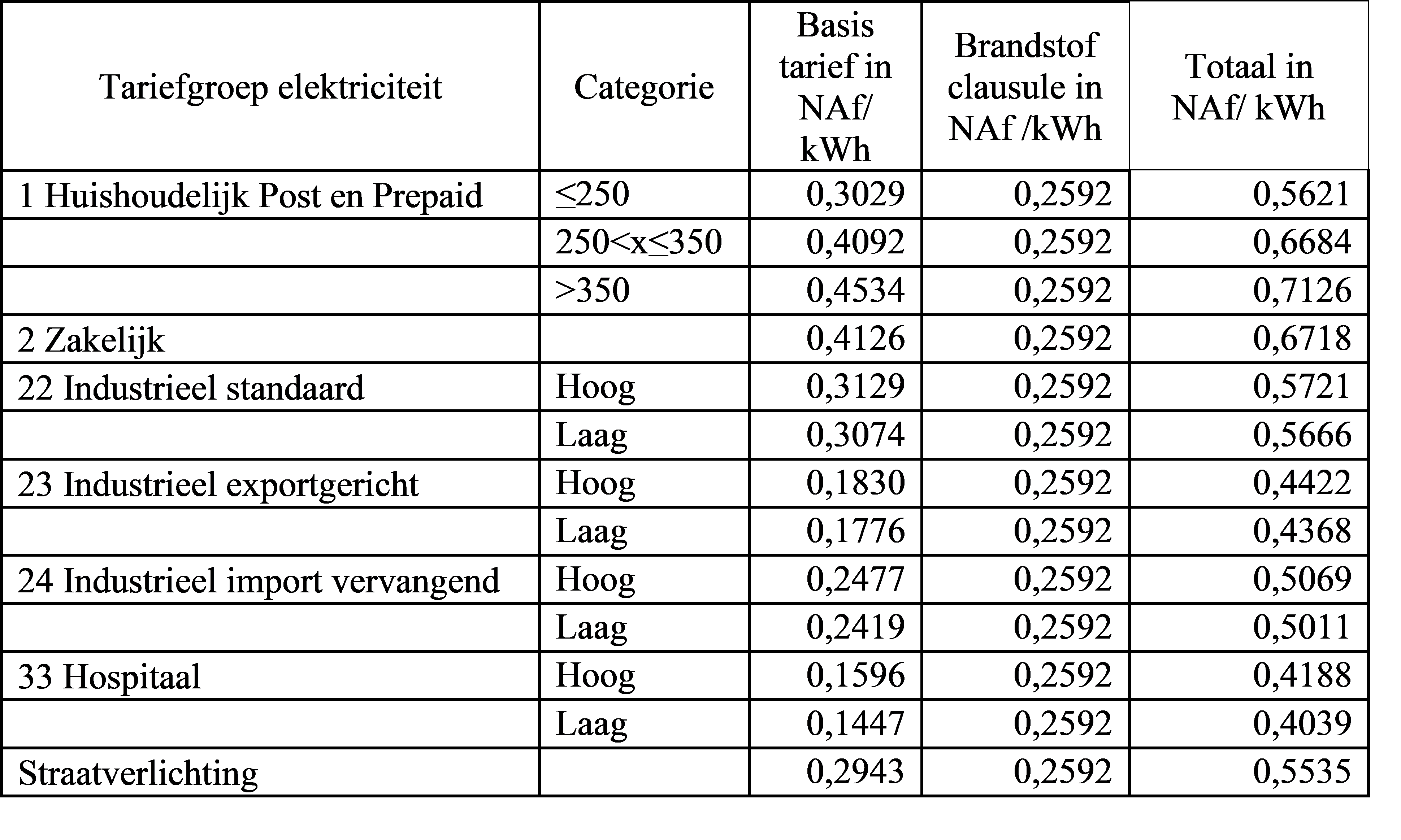 Het zakelijk tarief is van toepassing op verbruikers die minder dan 50 kVA verbruiken en niet onder het huishoudelijk tarief vallen.