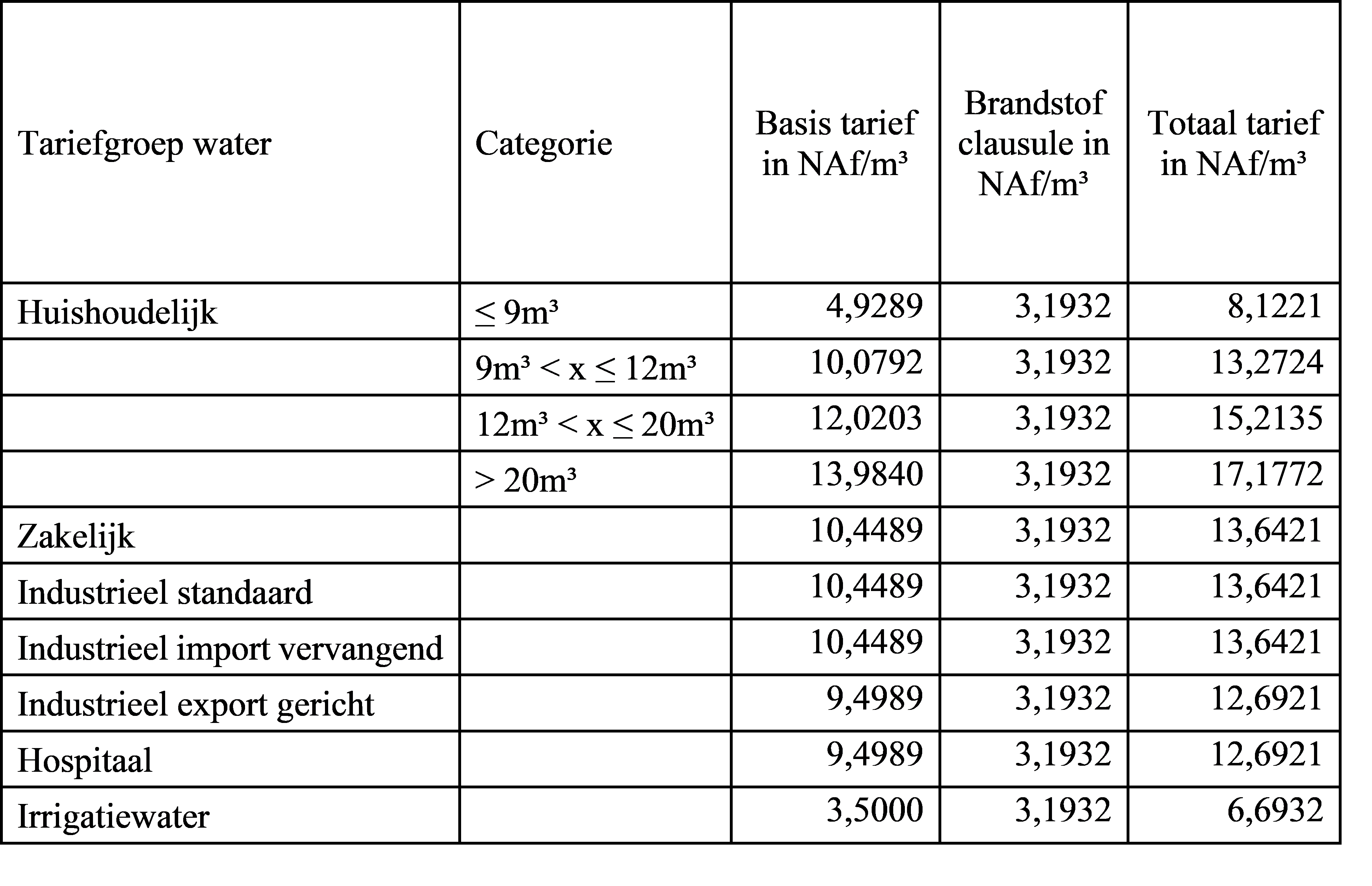 - Het tarief voor irrigatiewater is van toepassing op ondernemers in de commerciële akker- en tuinbouw.