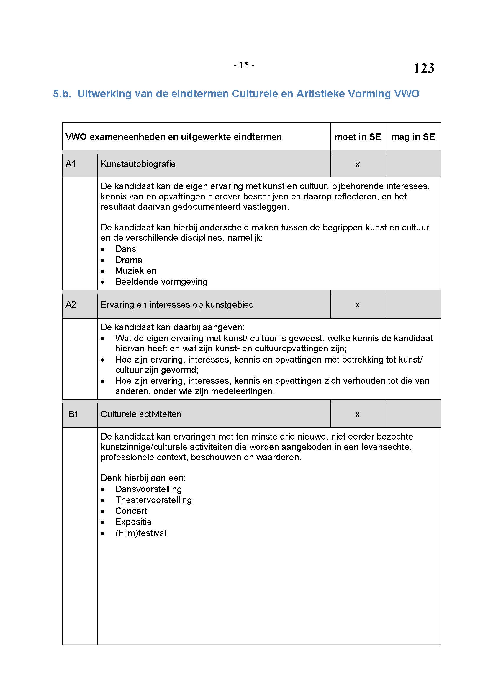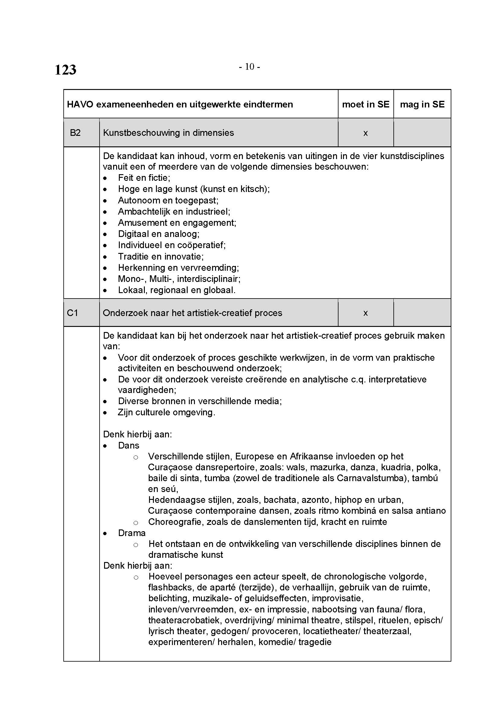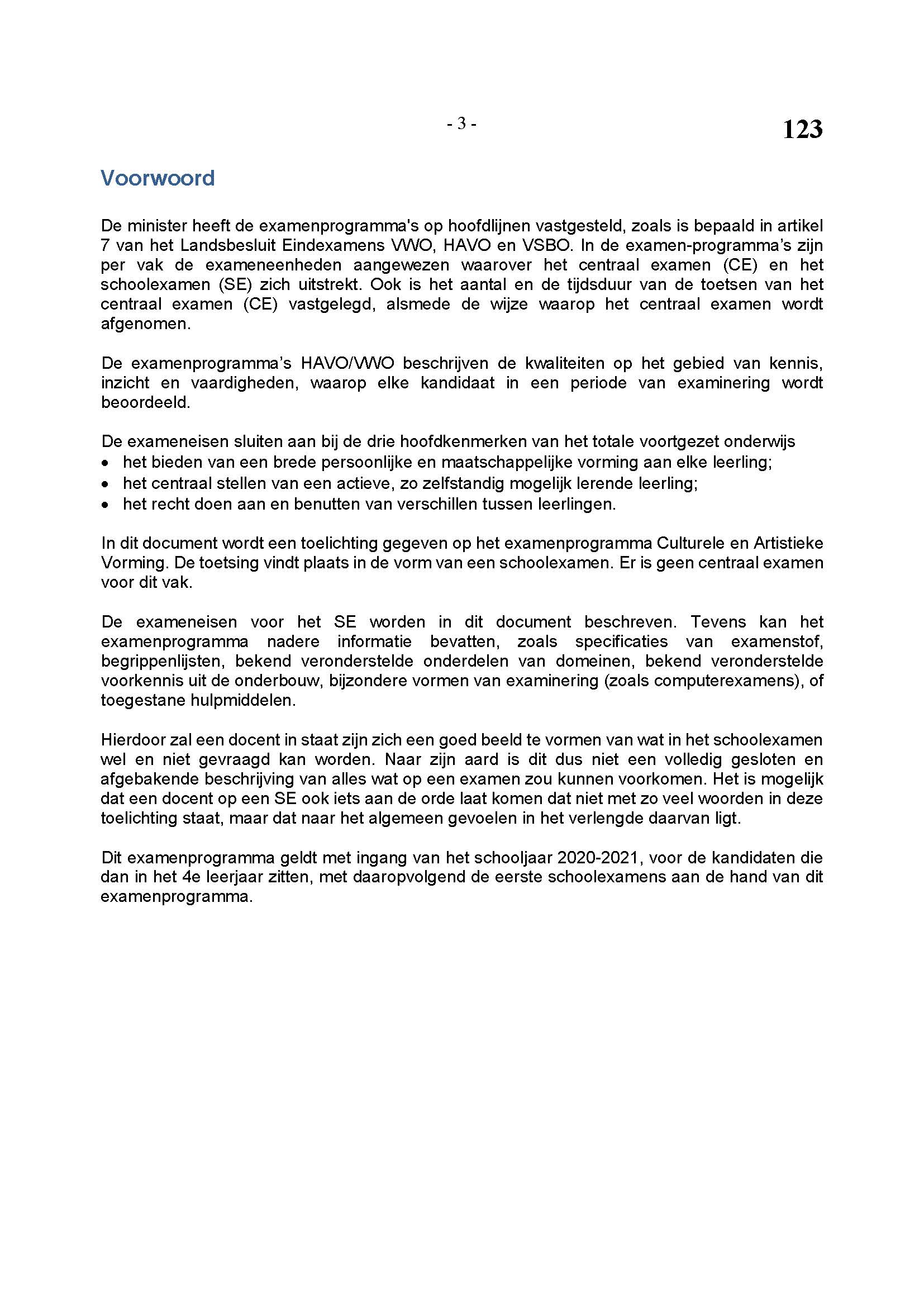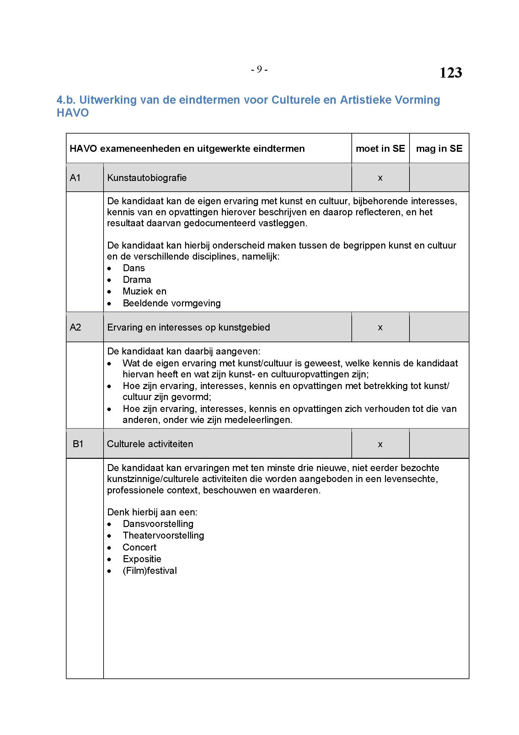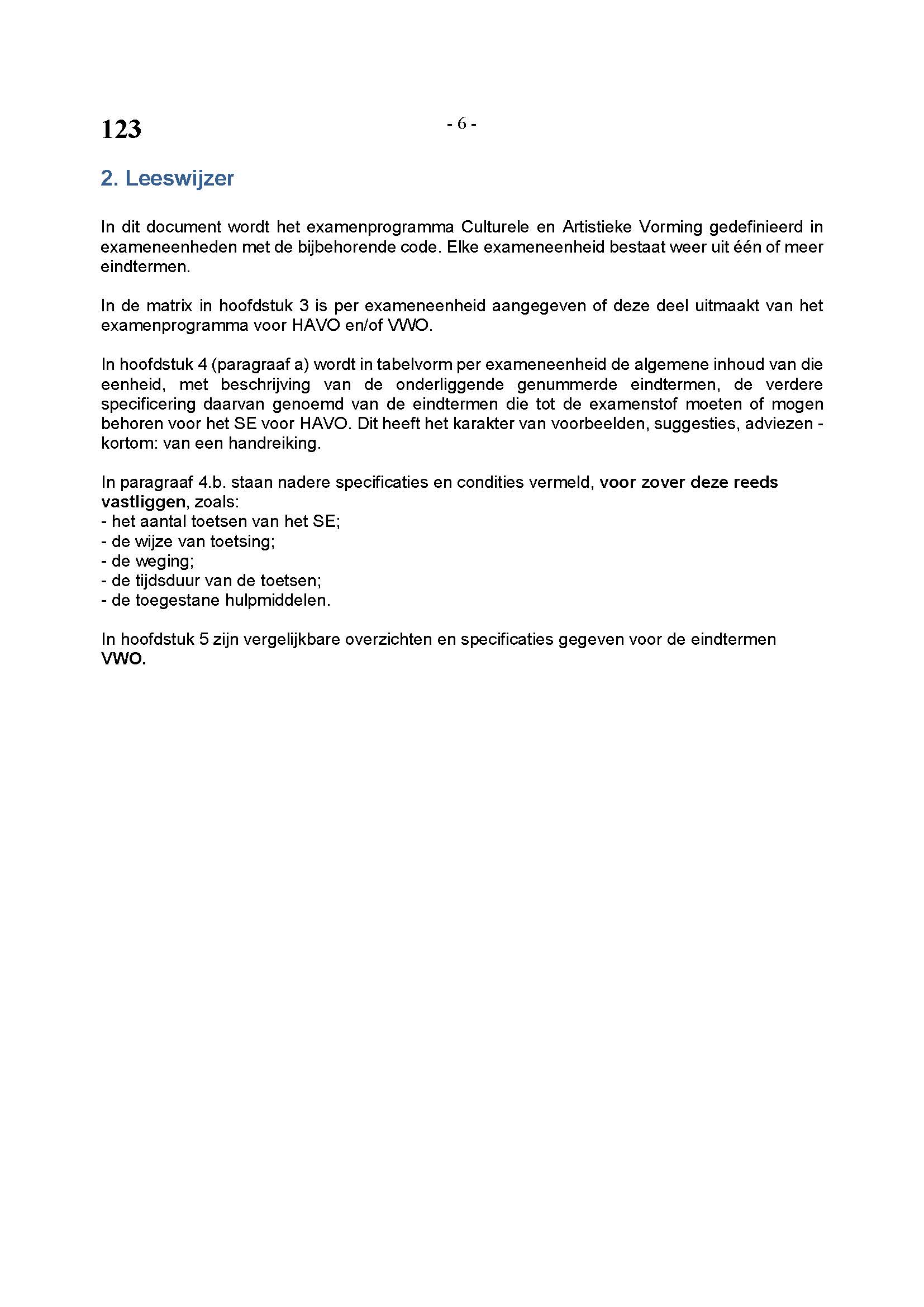 BEHORENDE BIJ ARTIKEL 1 VAN DE REGELING EINDEXAMENPROGRAMMA CULTURELE EN ARTISTIEKE VORMING EN LICHAMELIJKE OPVOEDING H.A.V.O. en V.W.O.