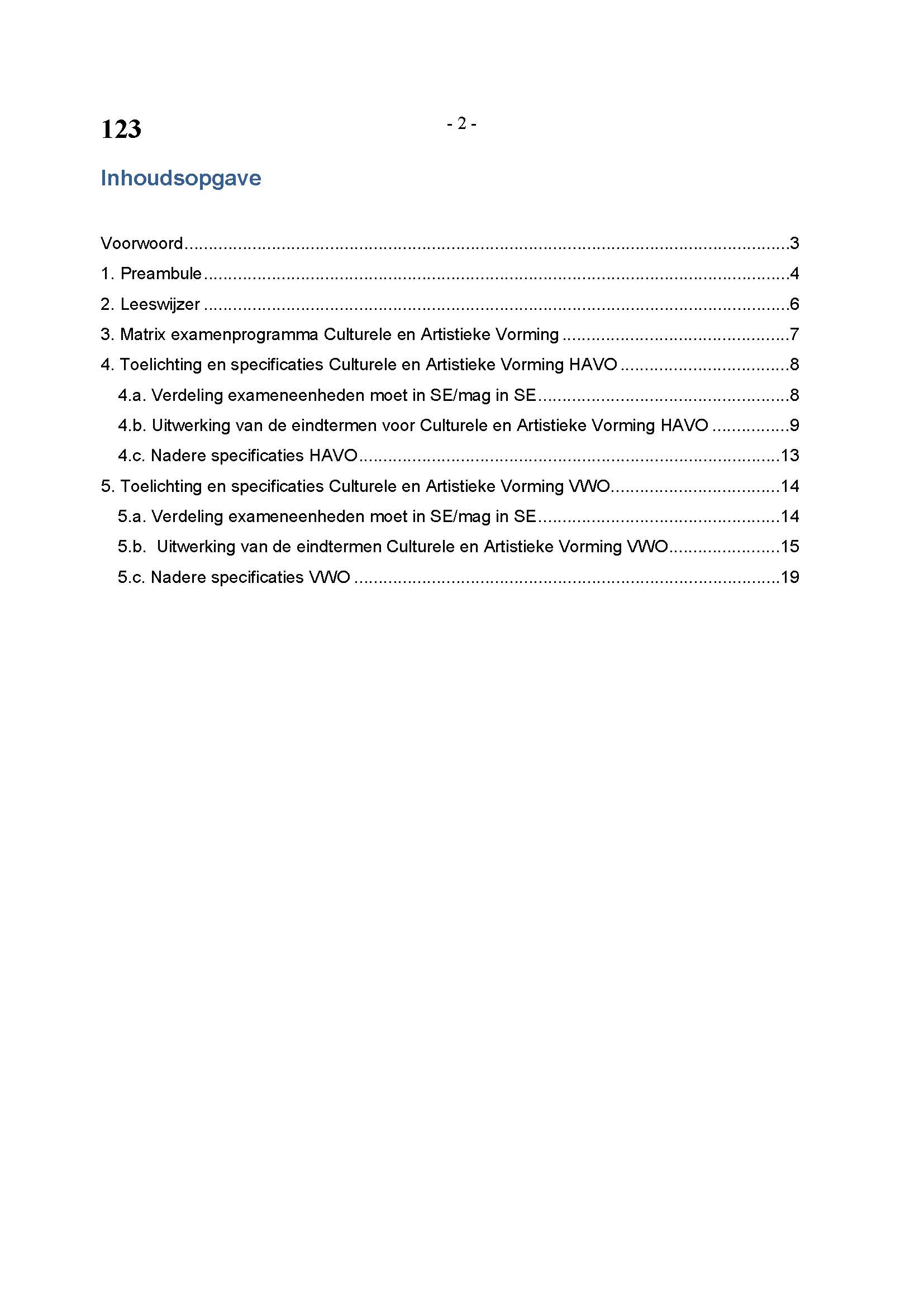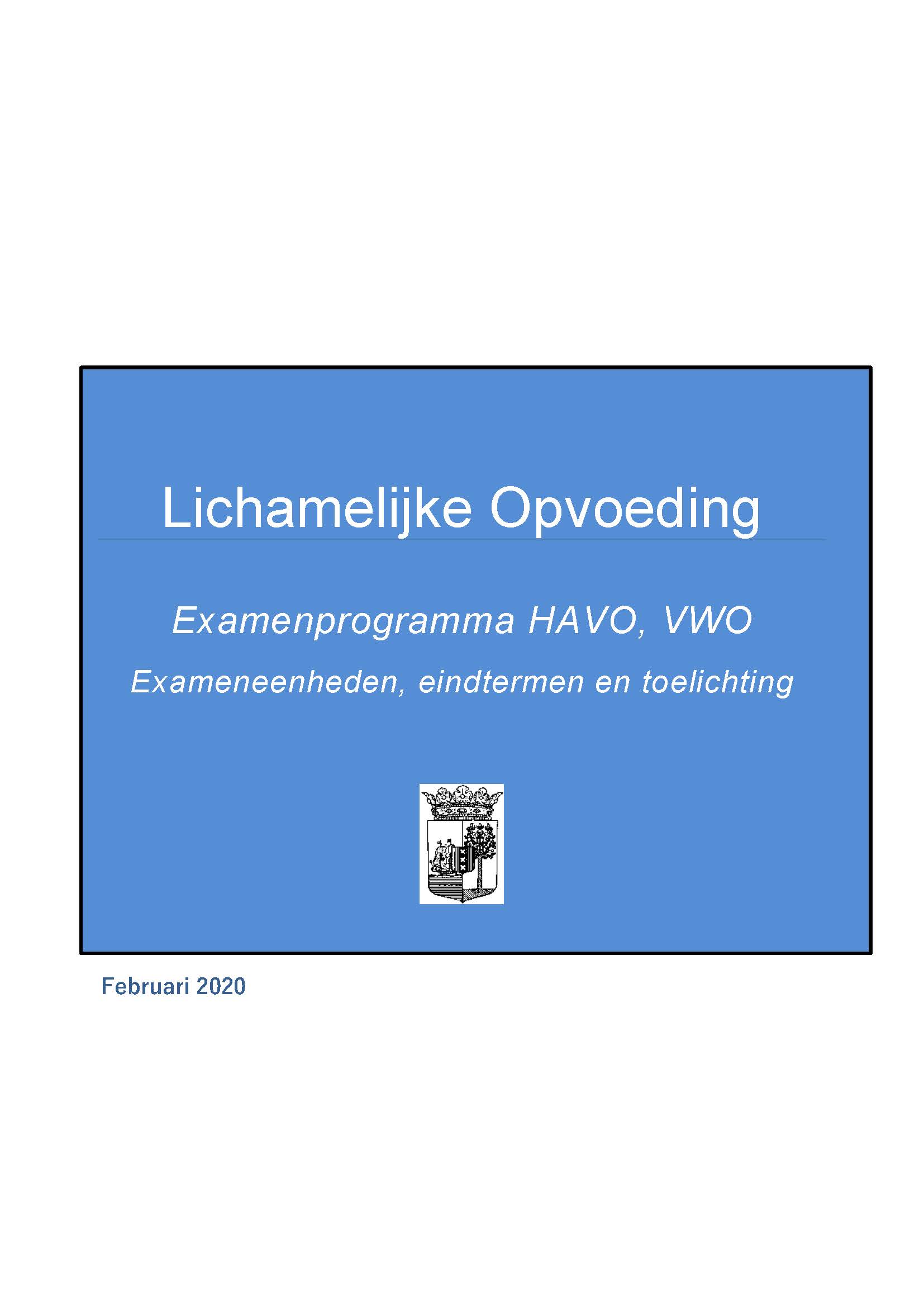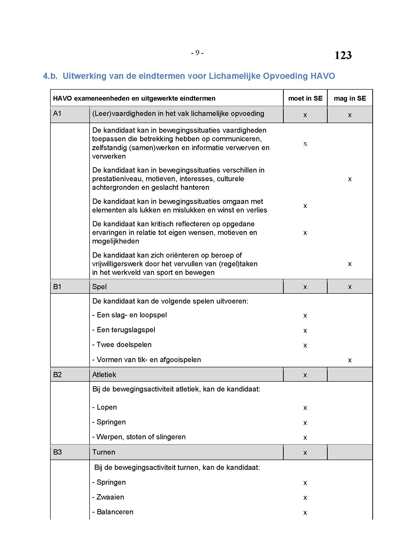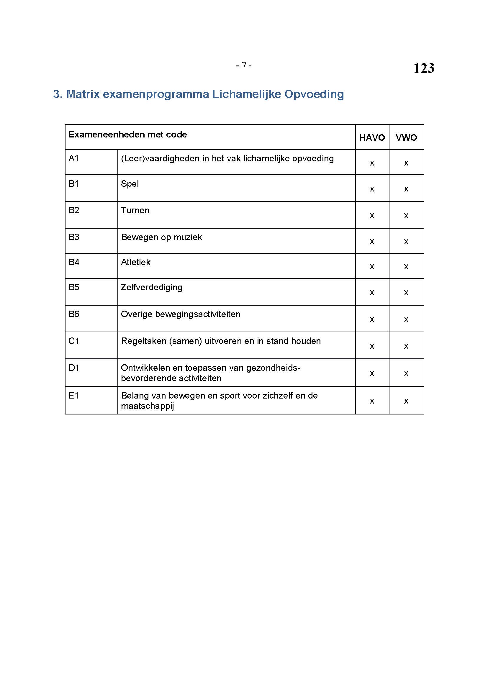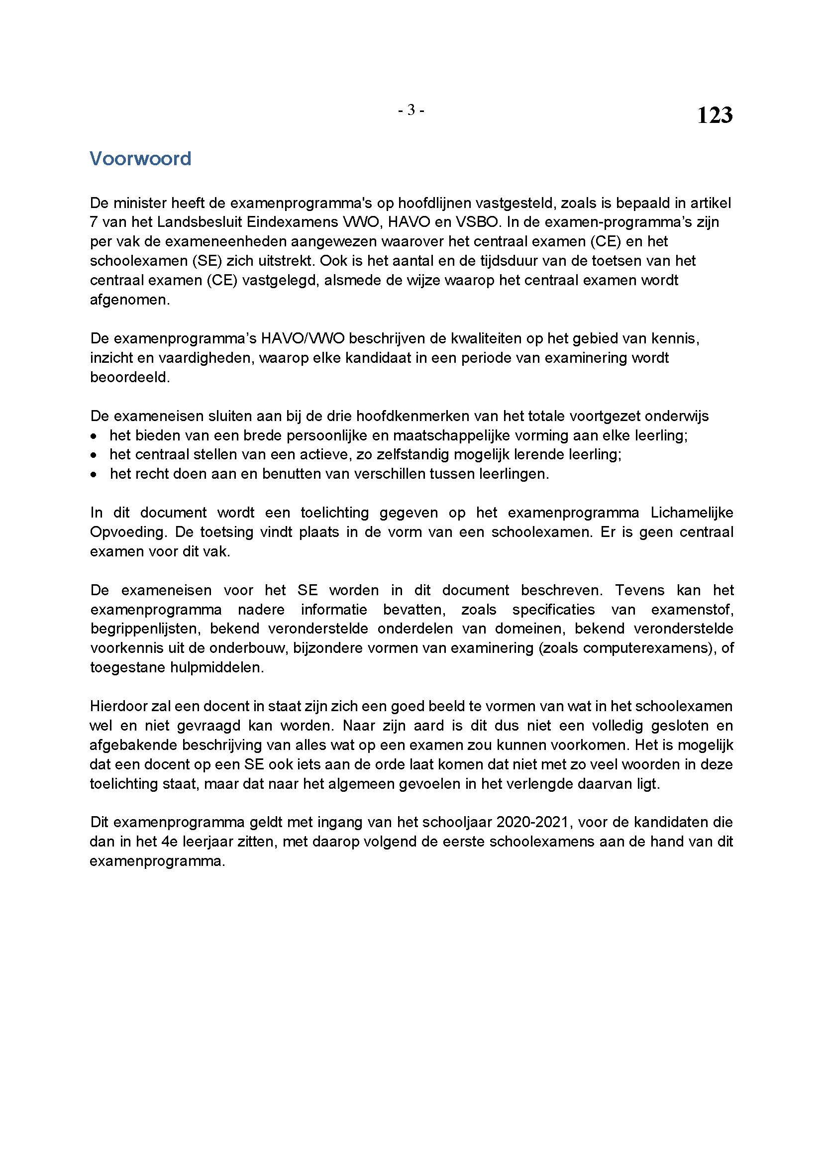 BEHORENDE BIJ ARTIKEL 1 VAN DE REGELING EINDEXAMENPROGRAMMA CULTURELE EN ARTISTIEKE VORMING EN LICHAMELIJKE OPVOEDING H.A.V.O. en V.W.O.