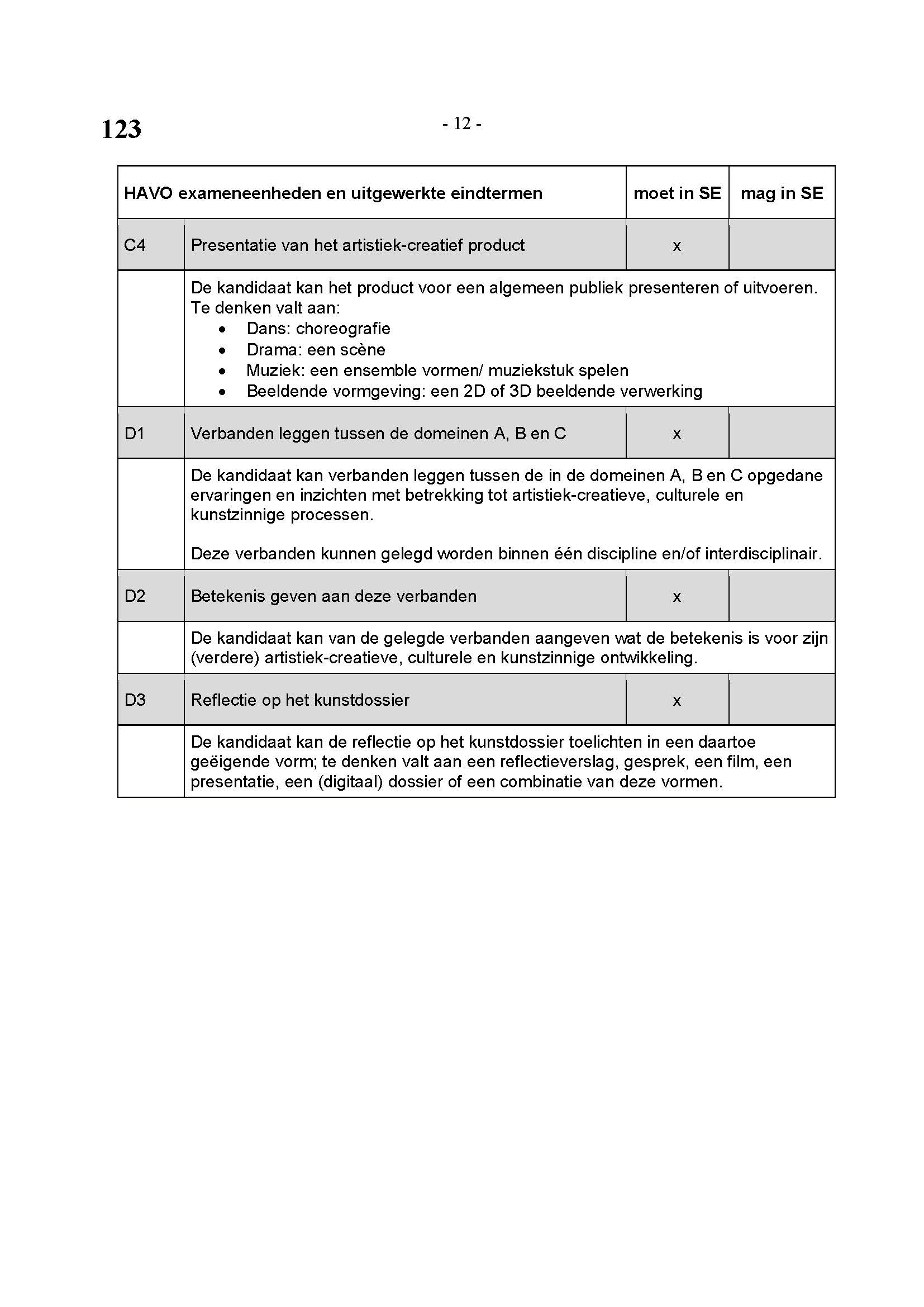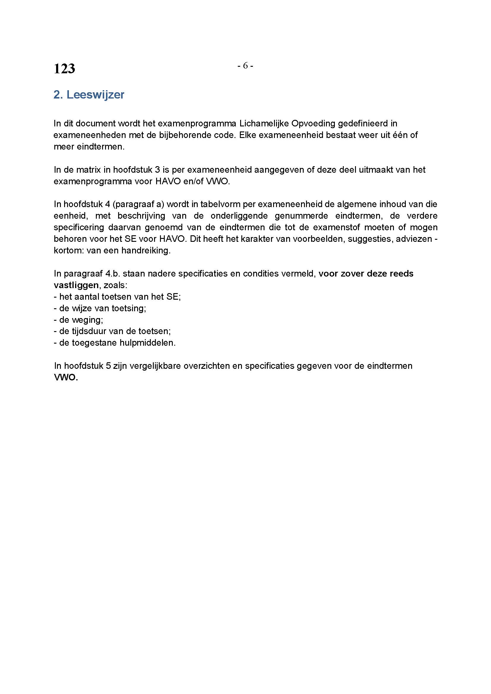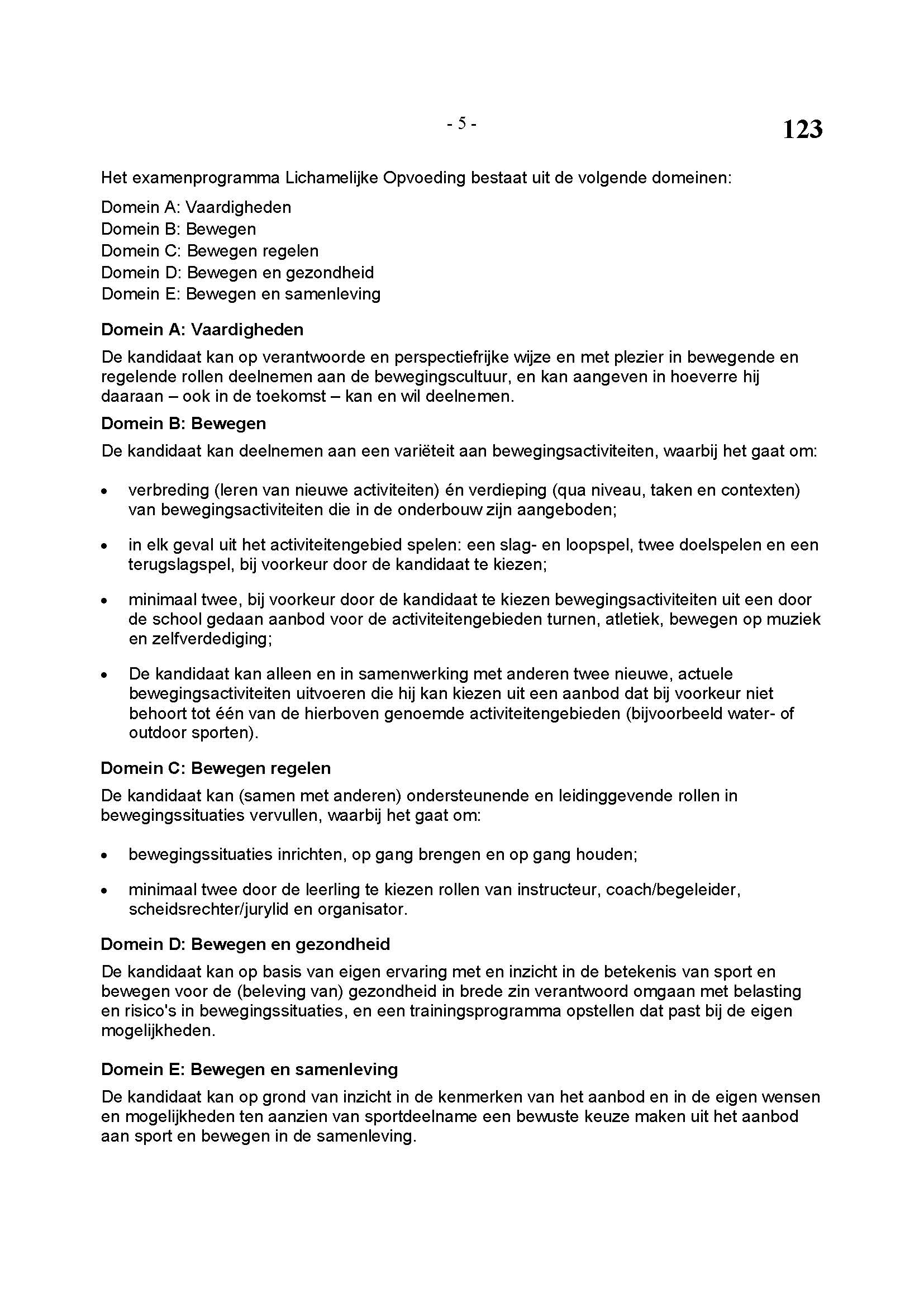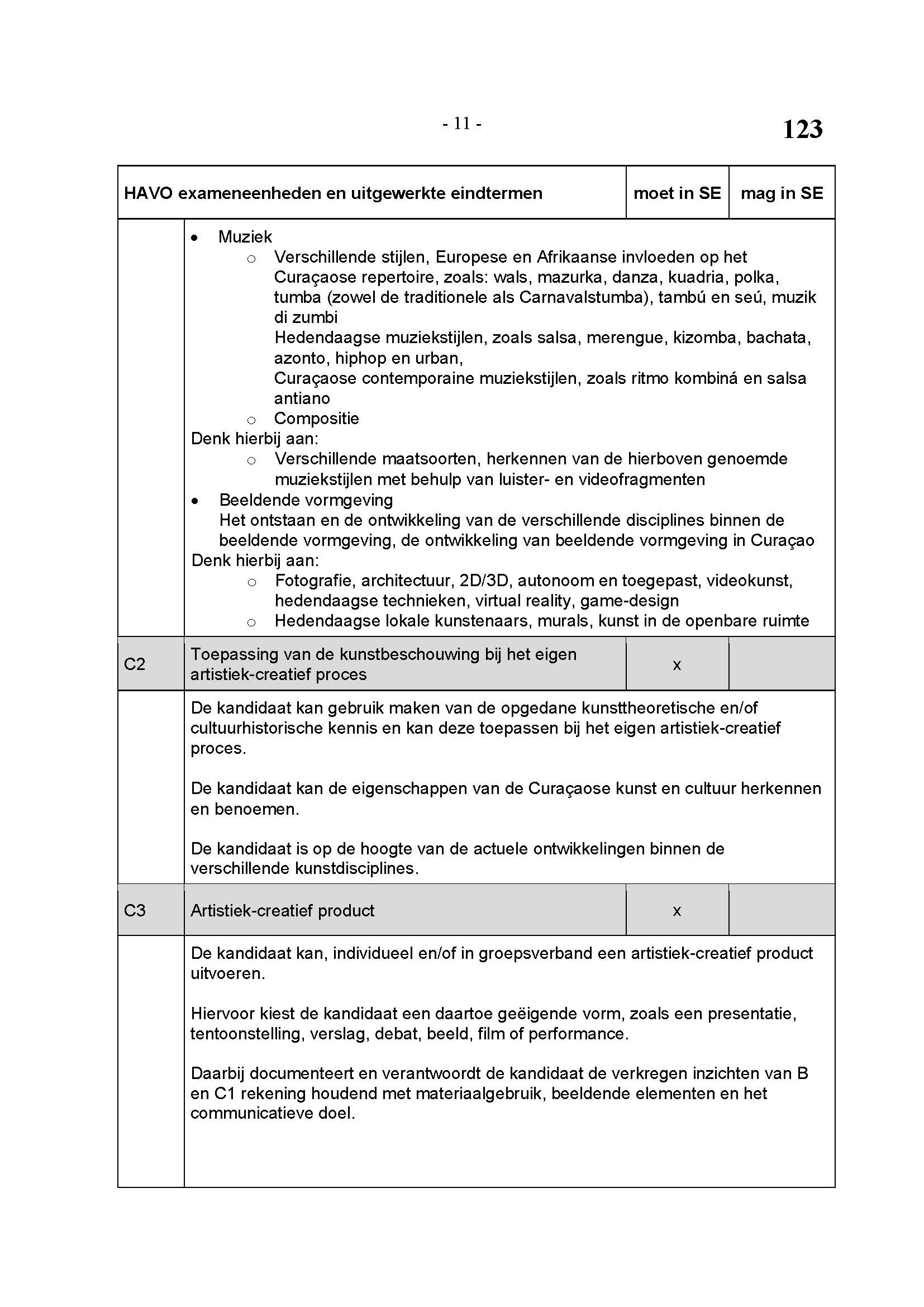 BEHORENDE BIJ ARTIKEL 1 VAN DE REGELING EINDEXAMENPROGRAMMA CULTURELE EN ARTISTIEKE VORMING EN LICHAMELIJKE OPVOEDING H.A.V.O. en V.W.O.