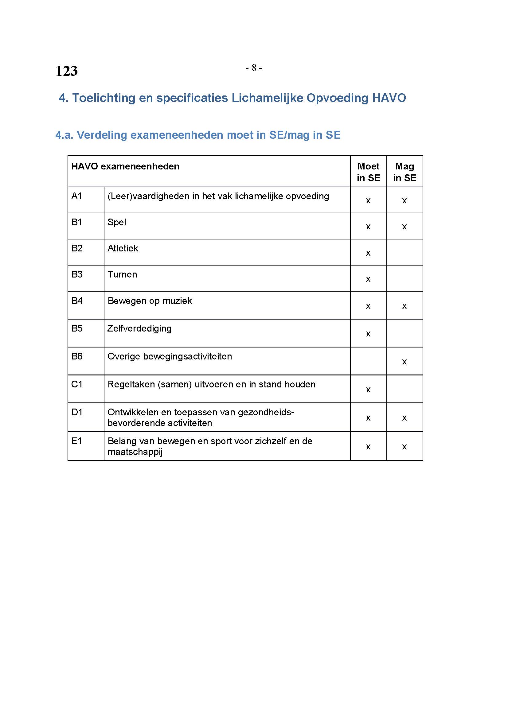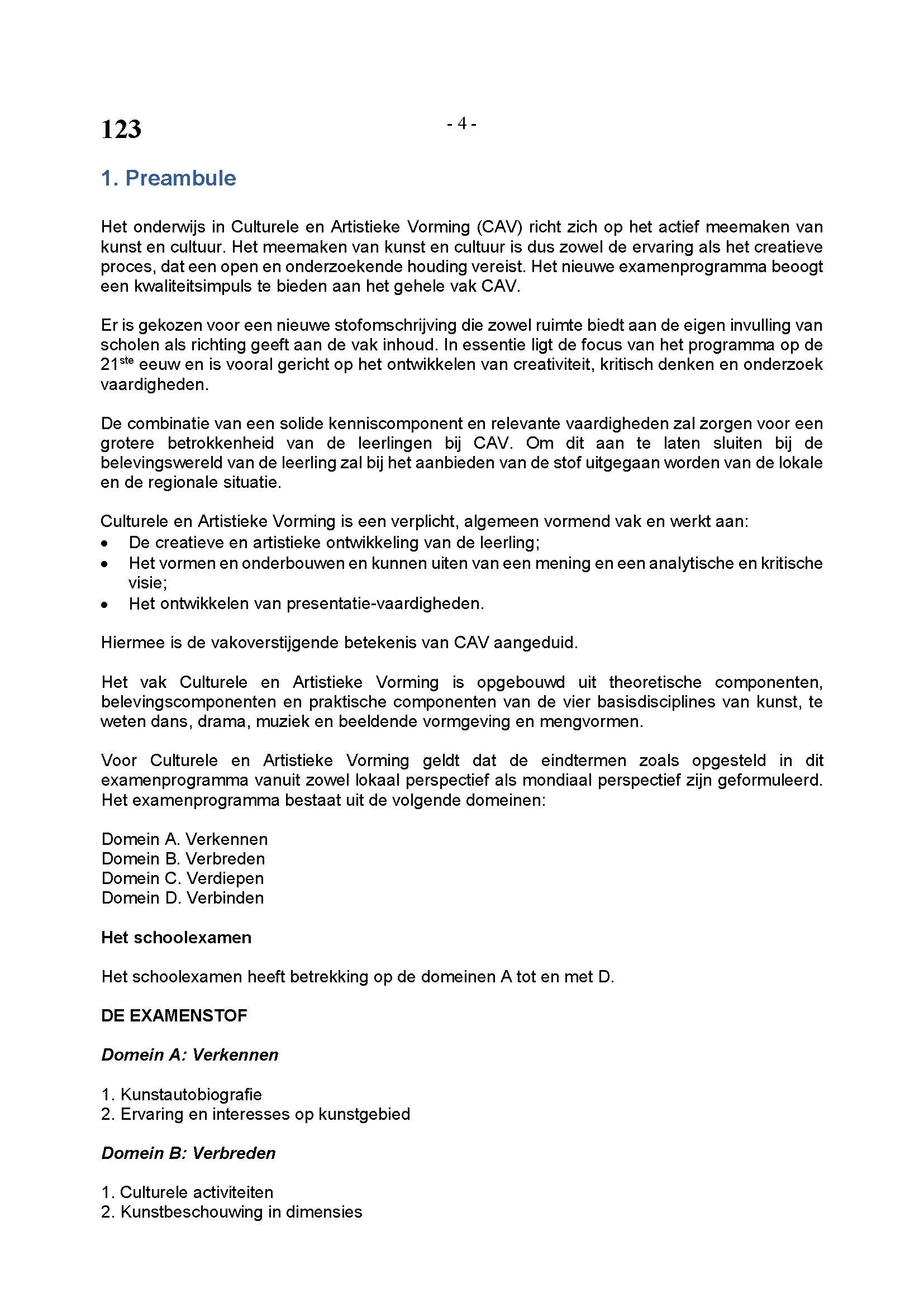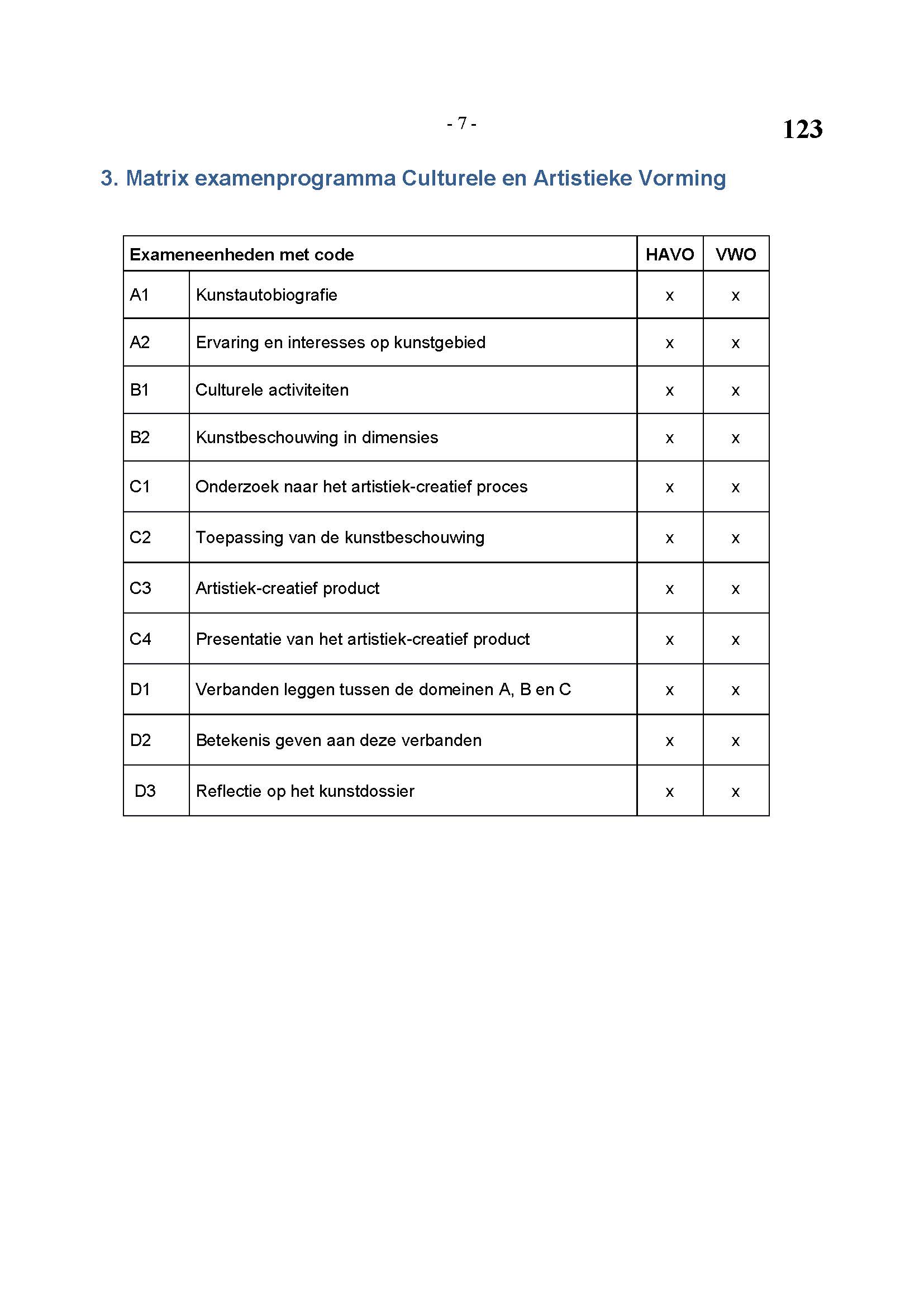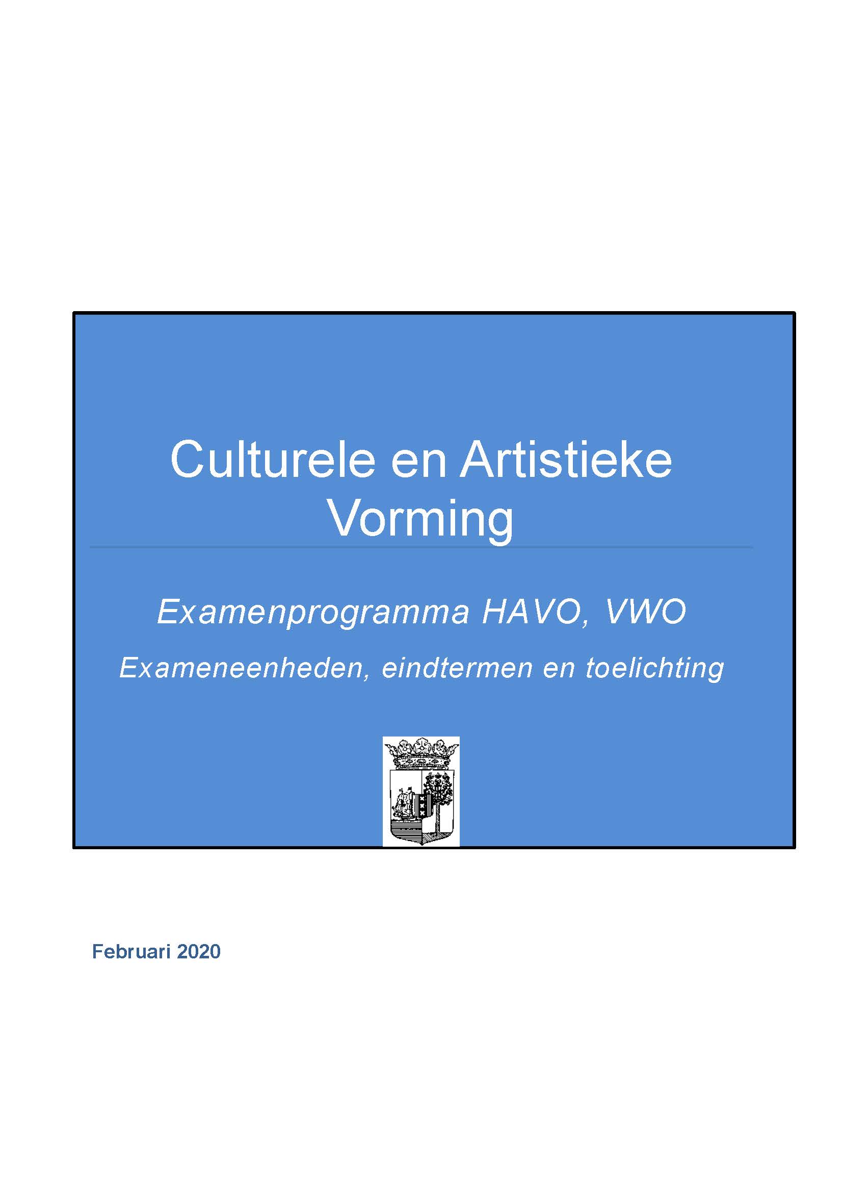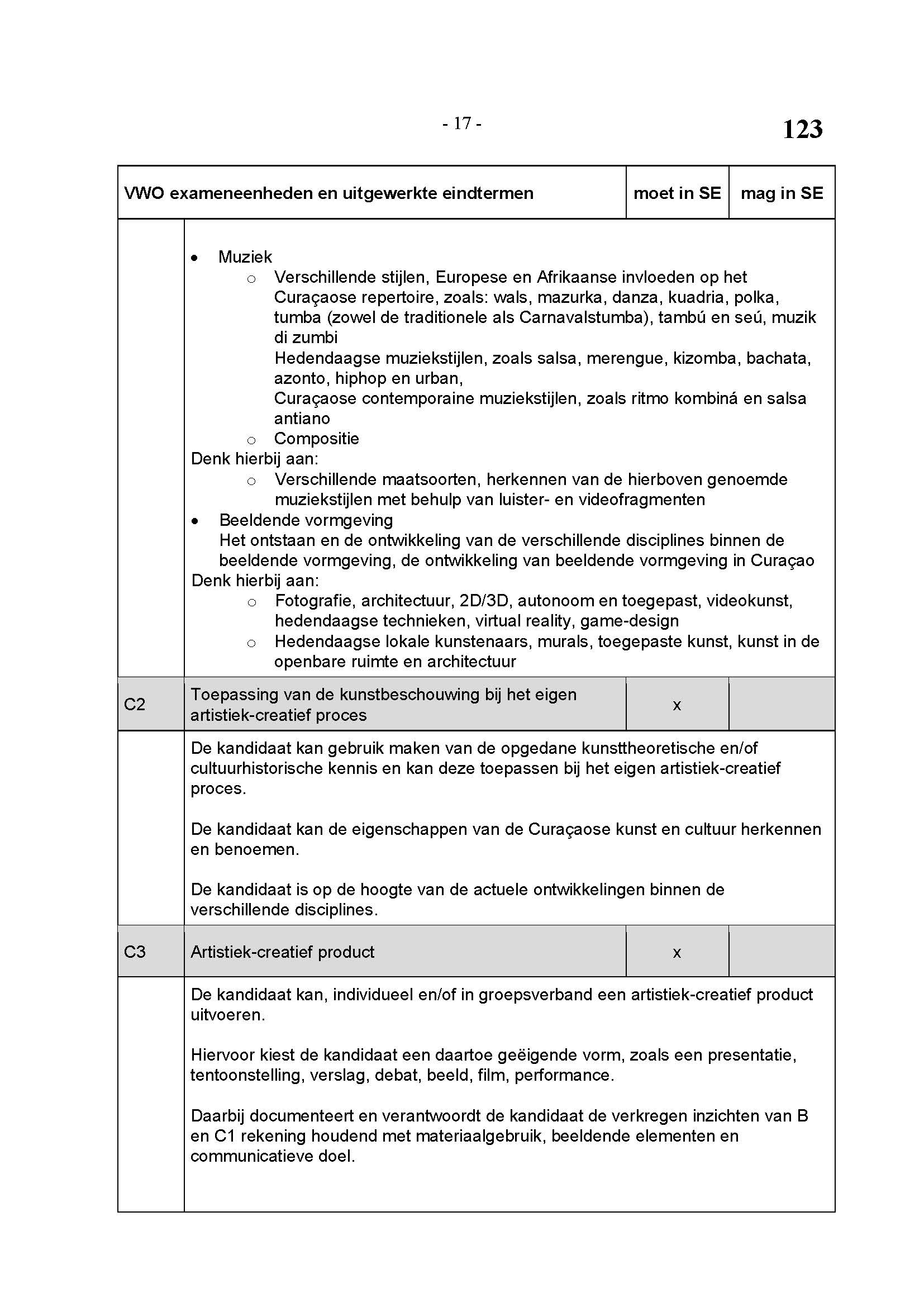 BEHORENDE BIJ ARTIKEL 1 VAN DE REGELING EINDEXAMENPROGRAMMA CULTURELE EN ARTISTIEKE VORMING EN LICHAMELIJKE OPVOEDING H.A.V.O. en V.W.O.