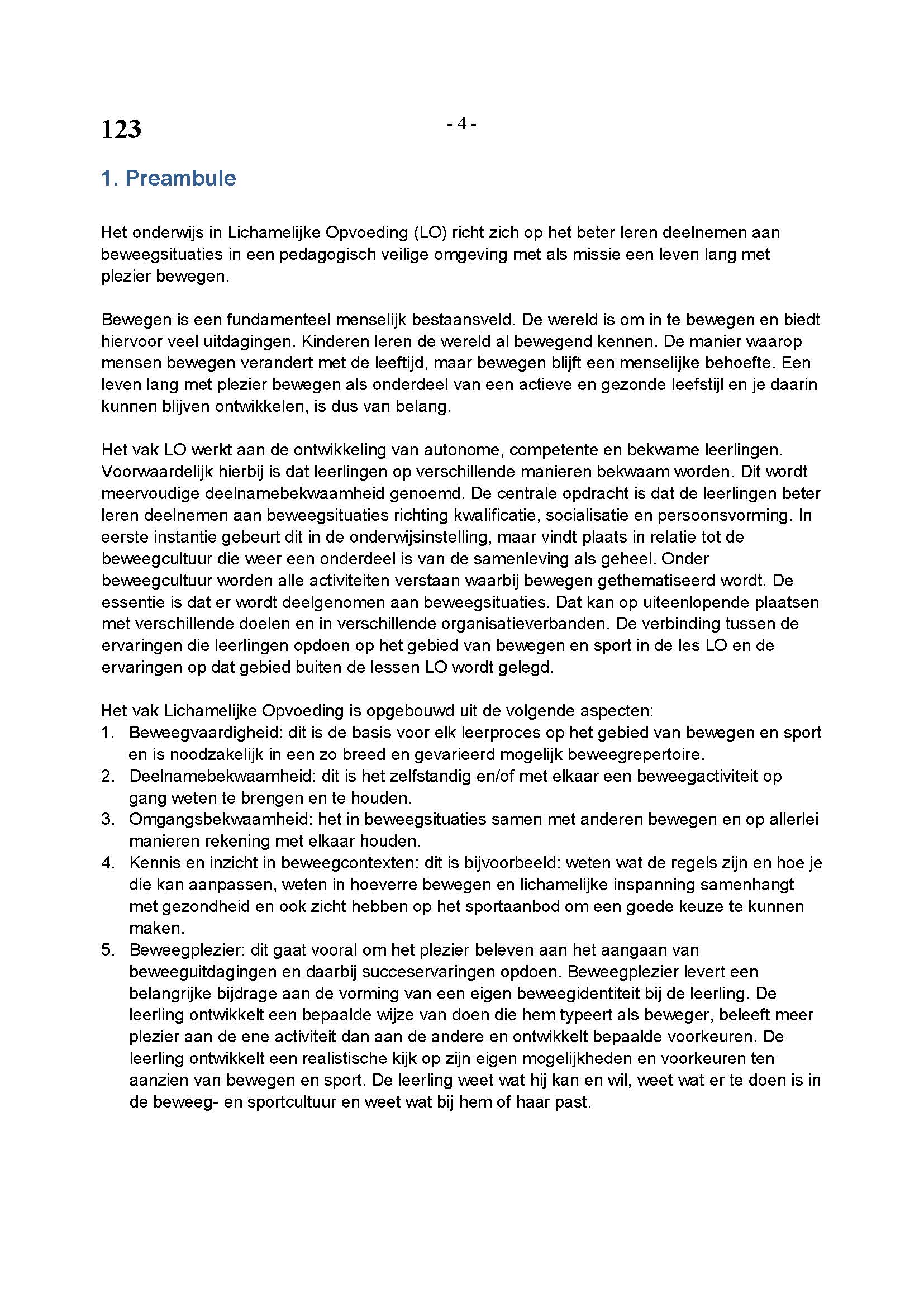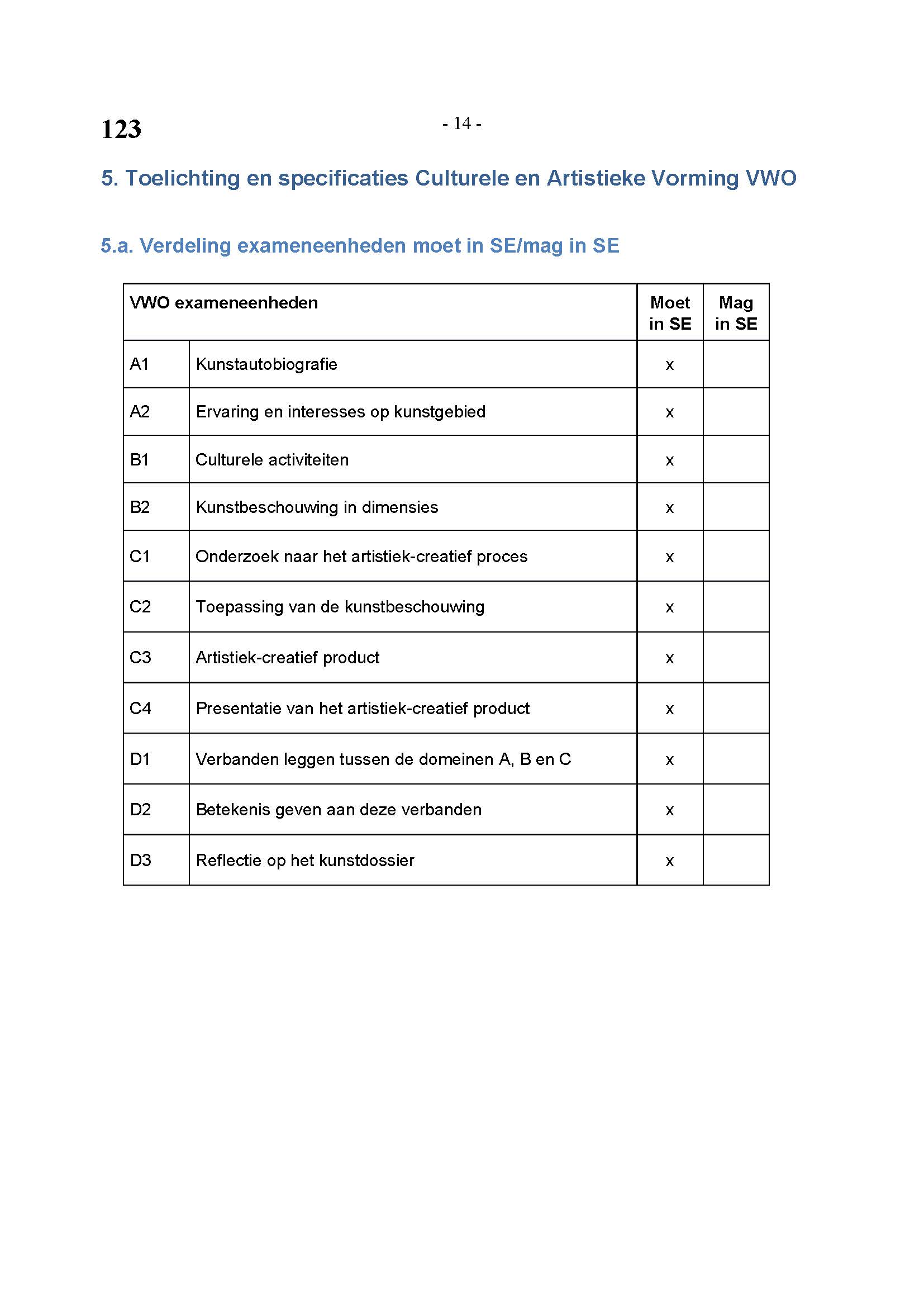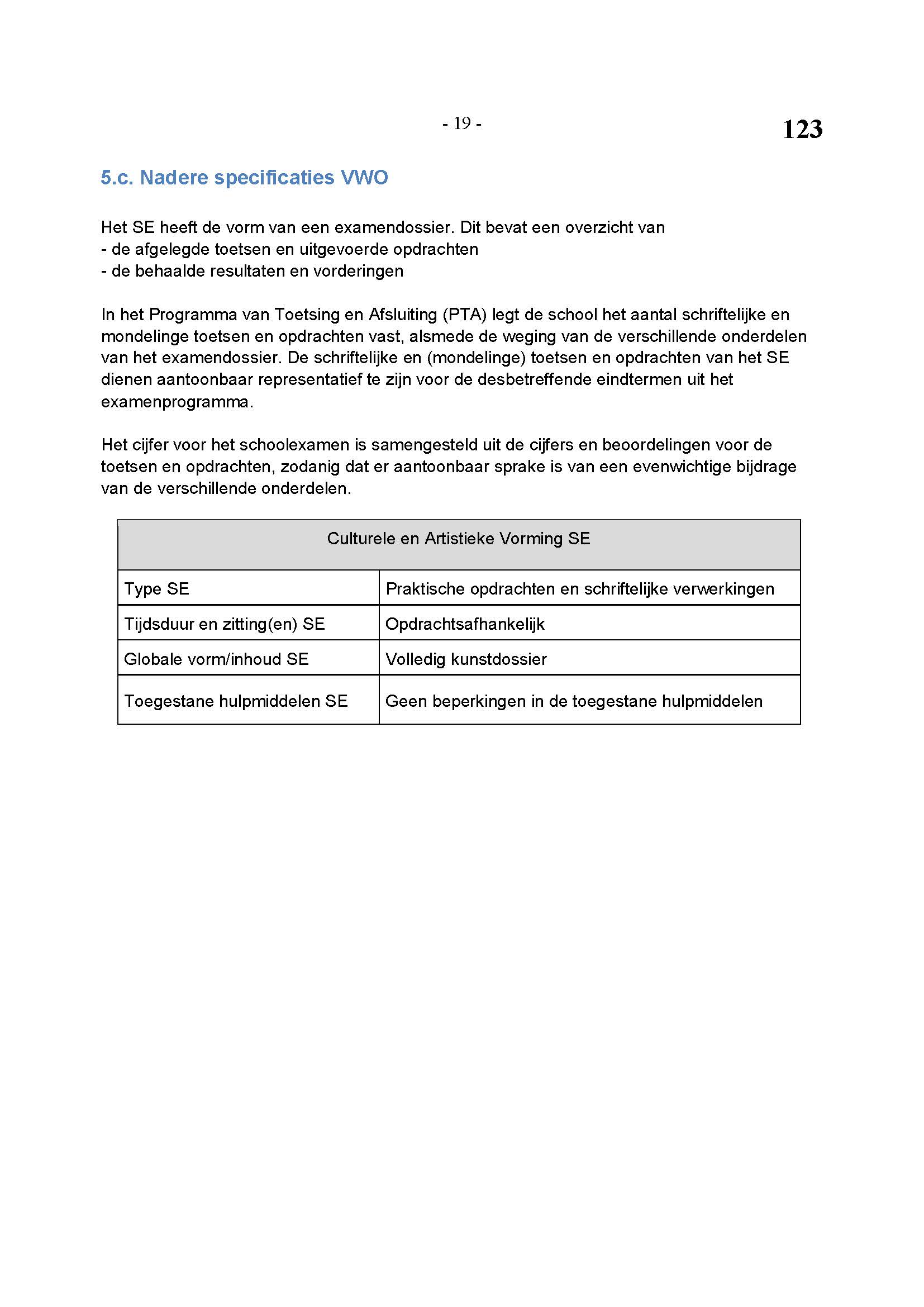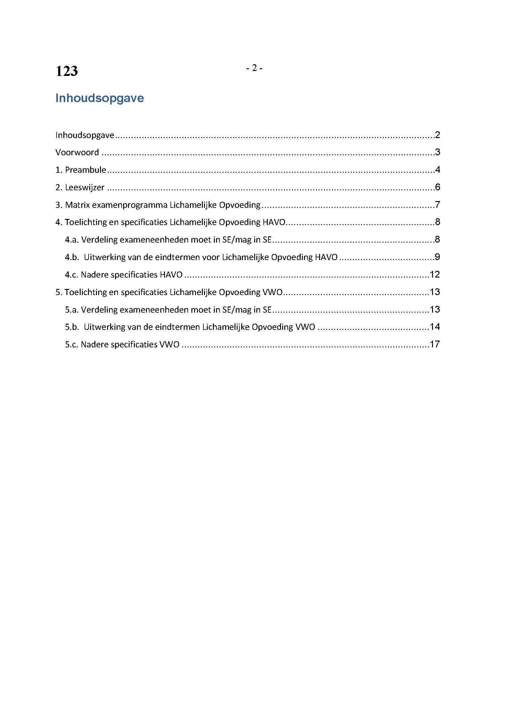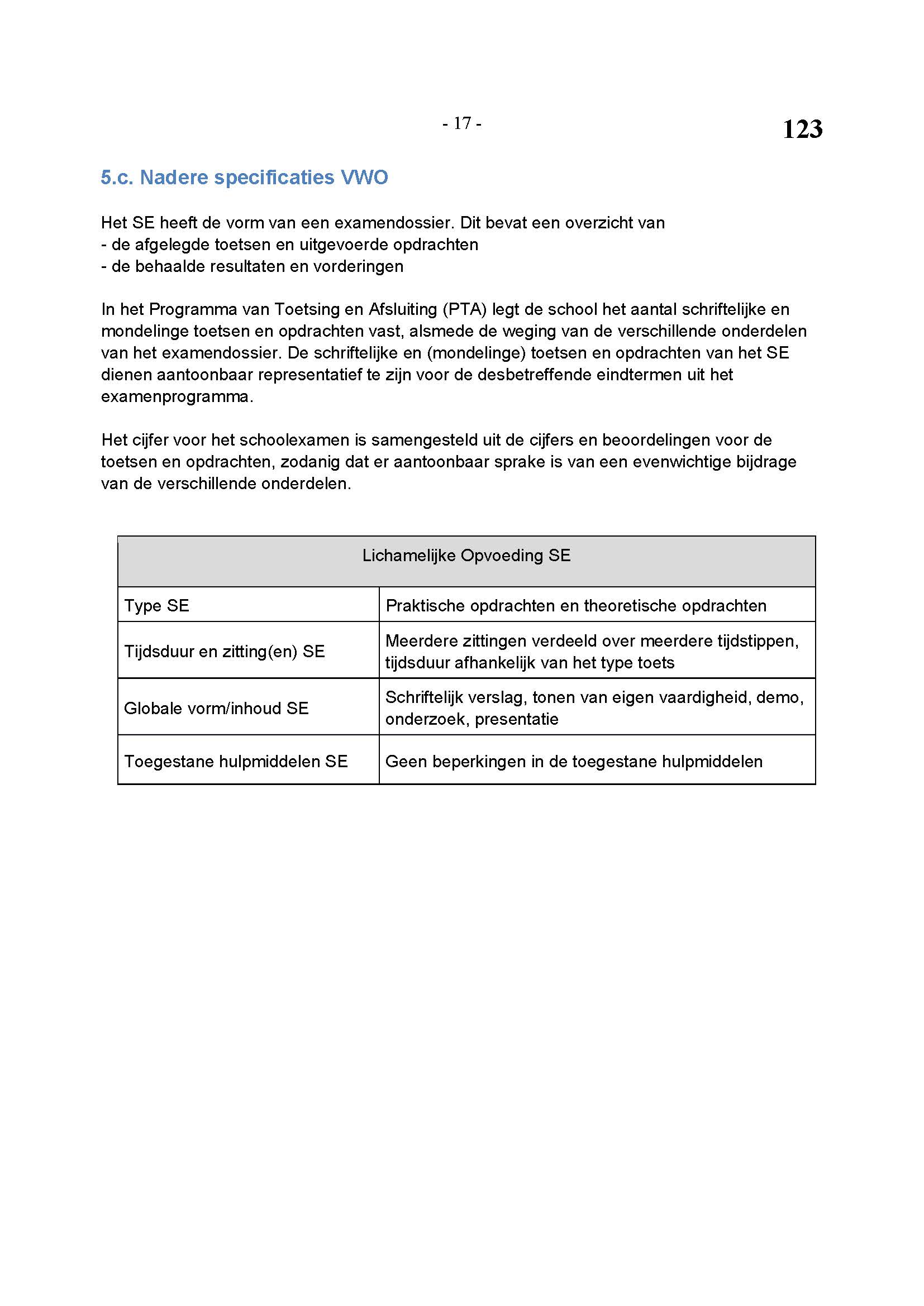 BEHORENDE BIJ ARTIKEL 1 VAN DE REGELING EINDEXAMENPROGRAMMA CULTURELE EN ARTISTIEKE VORMING EN LICHAMELIJKE OPVOEDING H.A.V.O. en V.W.O.