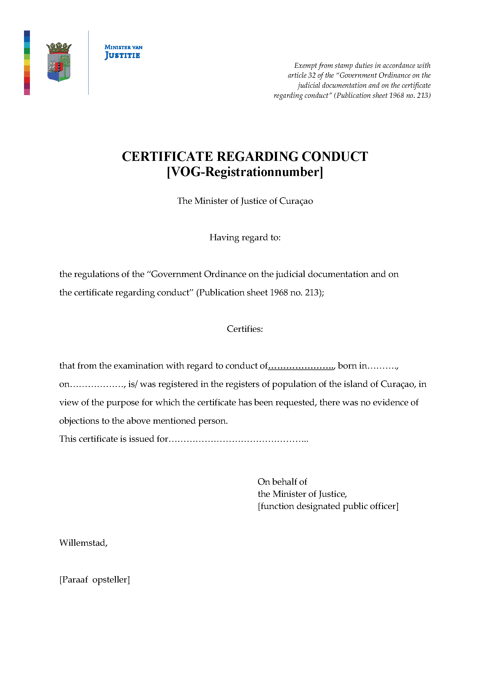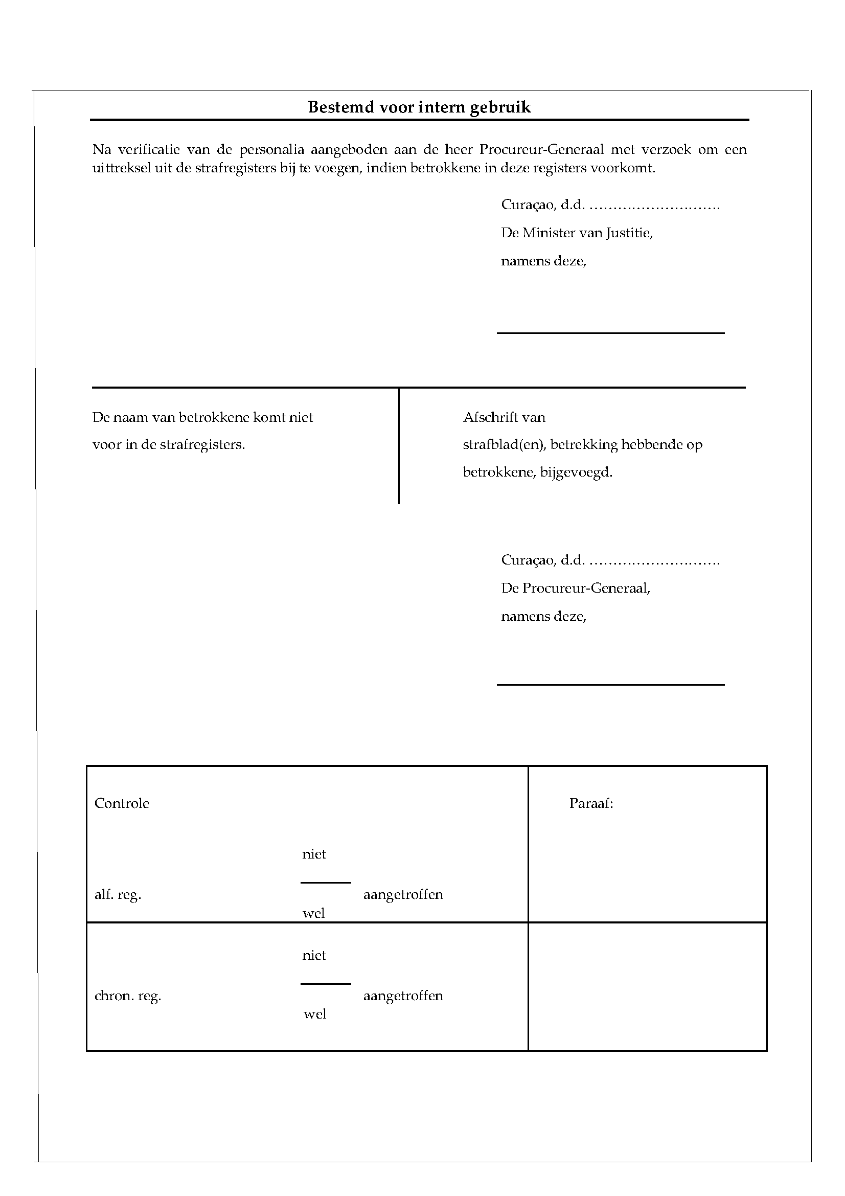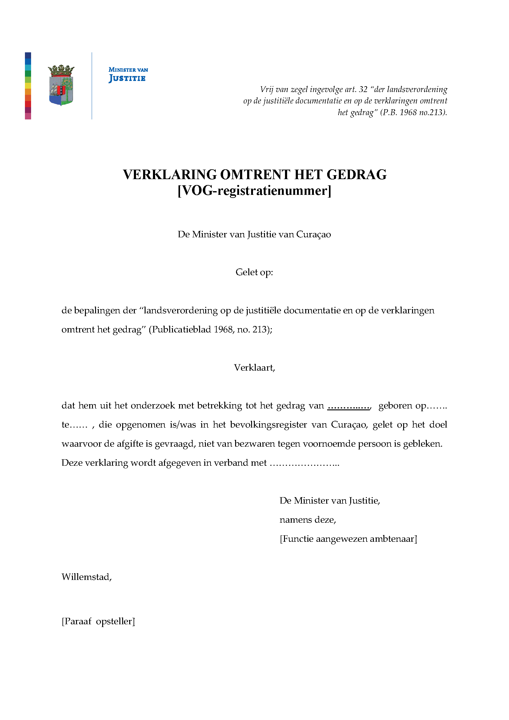 MINISTERIËLE REGELING MET ALGEMENE WERKING van de 23ste november 2020, ter uitvoering van de artikelen 14, eerste lid, 15, derde lid en 17, derde lid van de Landsverordening op de justitiële documentatie en op de verklaringen omtrent het gedrag