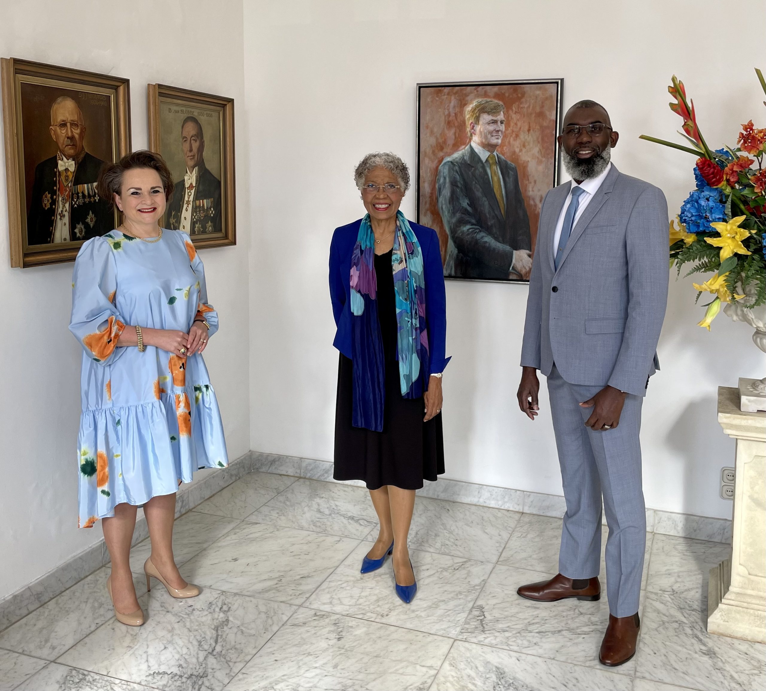 Op de foto: Staatssecretaris Alexandra van Huffelen, de Gouverneur van Curacao H.E. Lucille George-Wout en minister-president Gilmar Pisas.