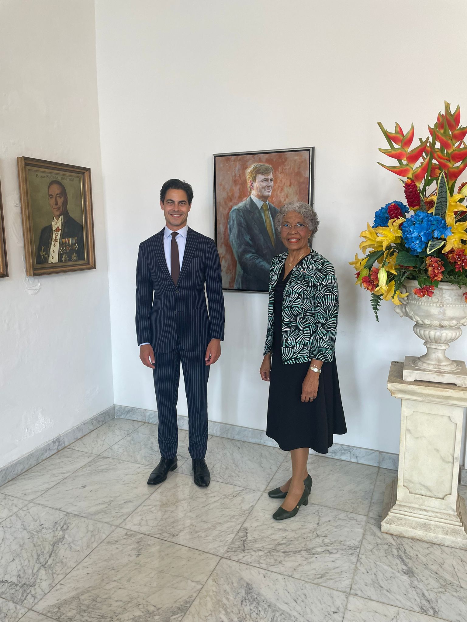 Op de foto: Minister Rob Jetten en de Gouverneur van Curaçao, H.E. Lucille George-Wout.