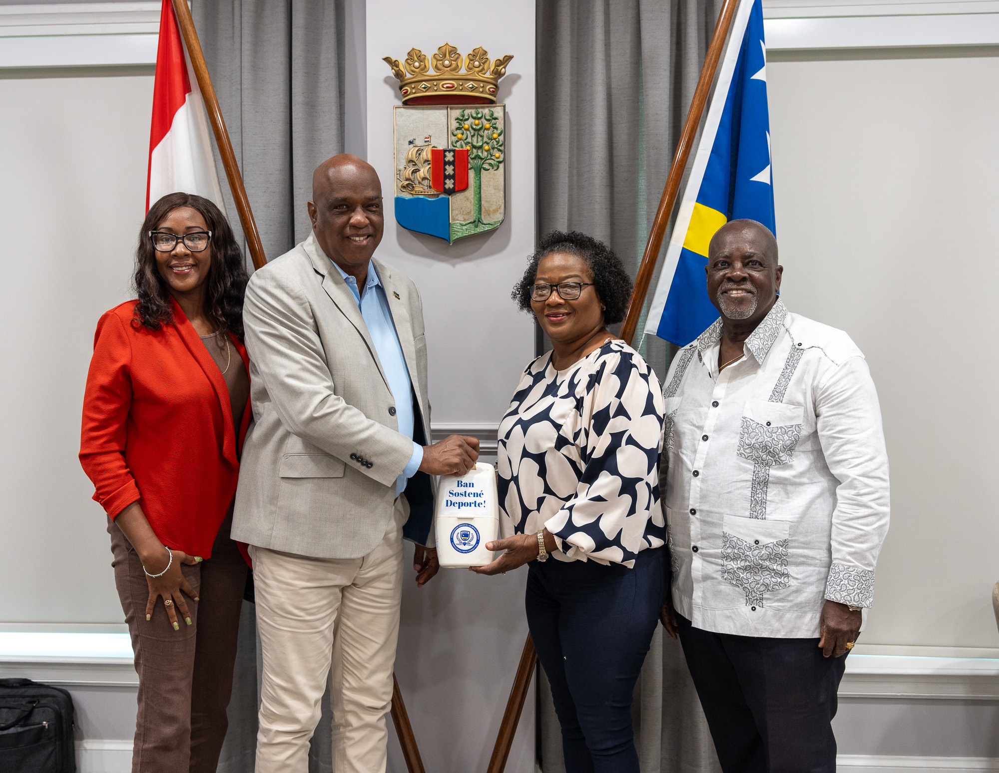WILLEMSTAD – Op woensdag 29 mei 2024 heeft Federashon Deporte i Olímpiko Kòrsou (FDOK) een bezoek gebracht aan de Raad van Ministers. Tijdens dit bezoek lanceerde FDOK de campagne met het thema “Ban Sostené Deporte” in de vorm van een inzamelingsactie om fondsen te werven voor de sport. Het streven van FDOK is om een bedrag van NAfl. 300.000,00 in te zamelen.
