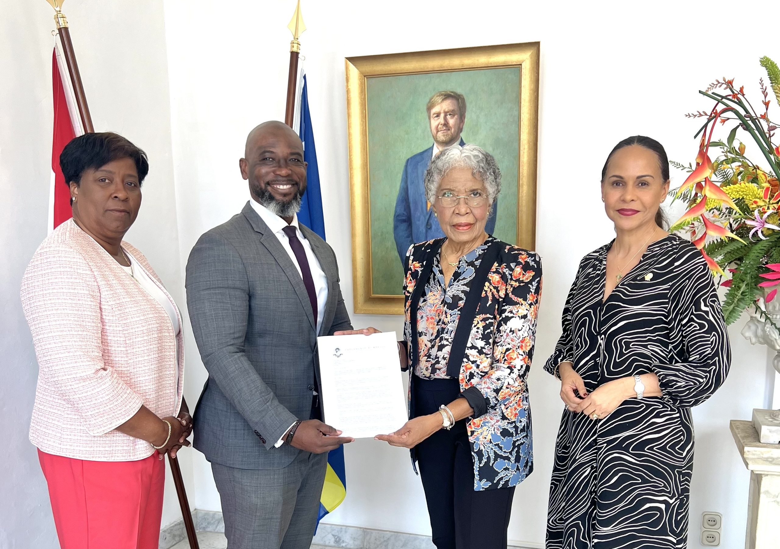 WILLEMSTAD – Op vrijdag 17 oktober 2025 hebben mevrouw Larmonie-Cecilia (fractievoorzitter PNP), de heer Girigorie (fractievoorzitter PAR) en mevrouw Mc. William (fractievoorzitter MAN-PIN) een bezoek gebracht aan de Gouverneur van Curaçao Hare Excellentie, Lucille George-Wout. Zij boden tijdens dit gesprek een brief aan waarin zij bezwaar maken tegen de annulering van de Statenvergadering voorzien voor hedenmiddag.