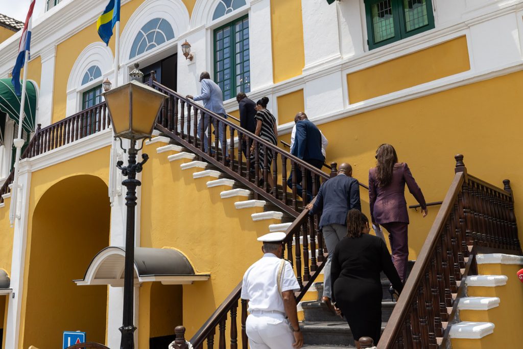 Op de foto’s ziet u momenten voor en nadat premier Pisas en de Raad van Ministers de brief aan de gouverneur overhandigden.