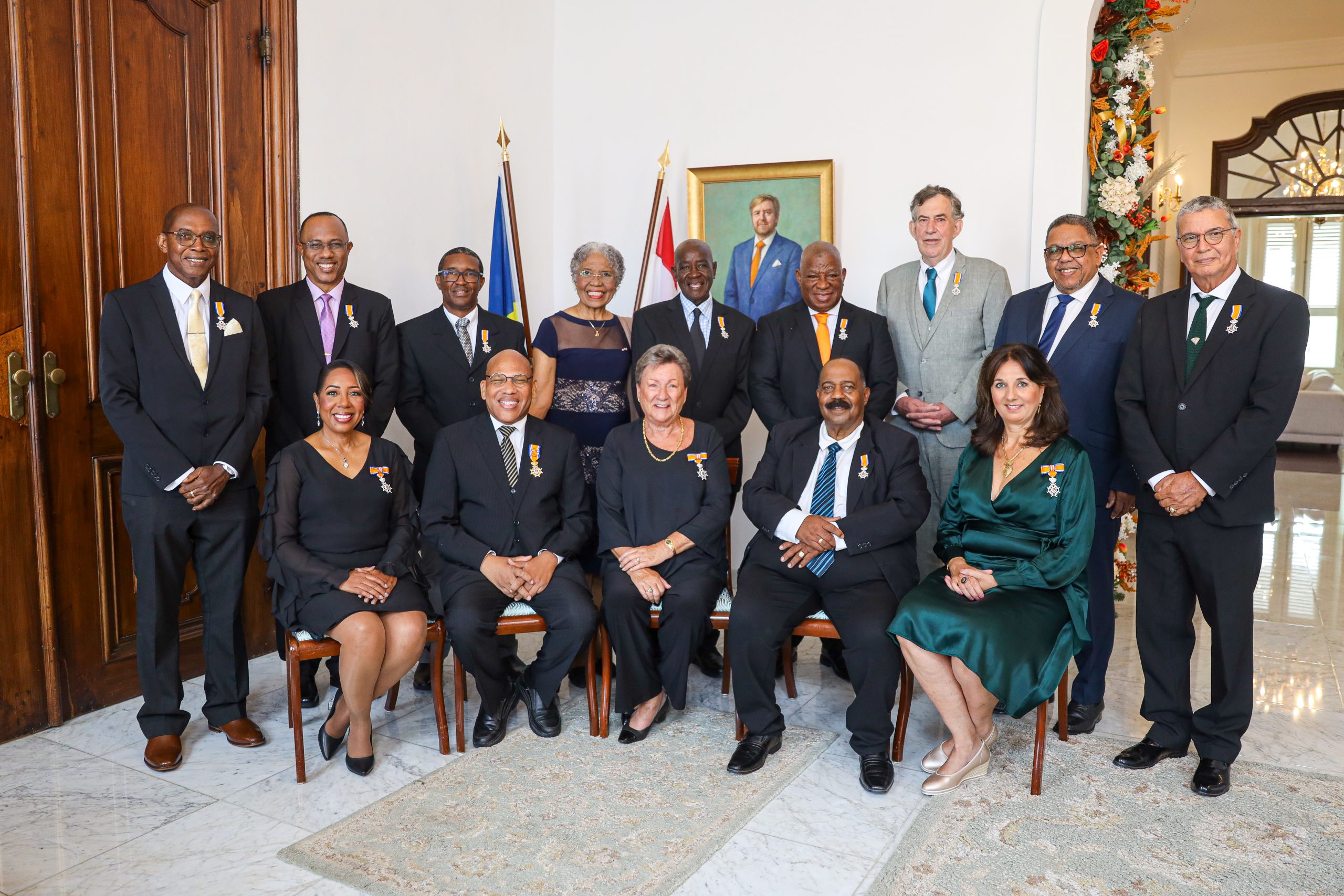 Willemstad – Hedenochtend heeft de Gouverneur van Curaçao, H.E. Lucille George-Wout, namens Zijne Majesteit de Koning Willem-Alexander, tijdens een officiële ceremonie in het Gouverneurshuis te Fort Amsterdam, 12 Curaçaose burgers en 1 Nederlandse burger mogen decoreren met een Koninklijke onderscheiding voor hun bijzondere verdiensten ten behoeve van de gemeenschap. Verdiensten die onmisbaar zijn voor de Curaçaose gemeenschap en die door de medeburgers niet onopgemerkt zijn gebleven.