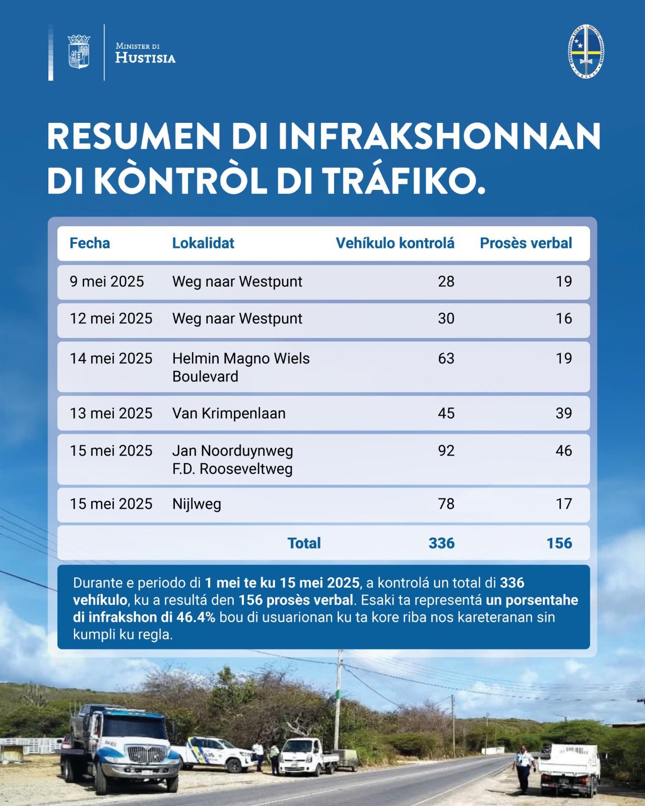 46,4% di vehíkulonan kontrolá pa KPC no tin dokumentonan na òrdu