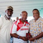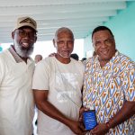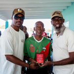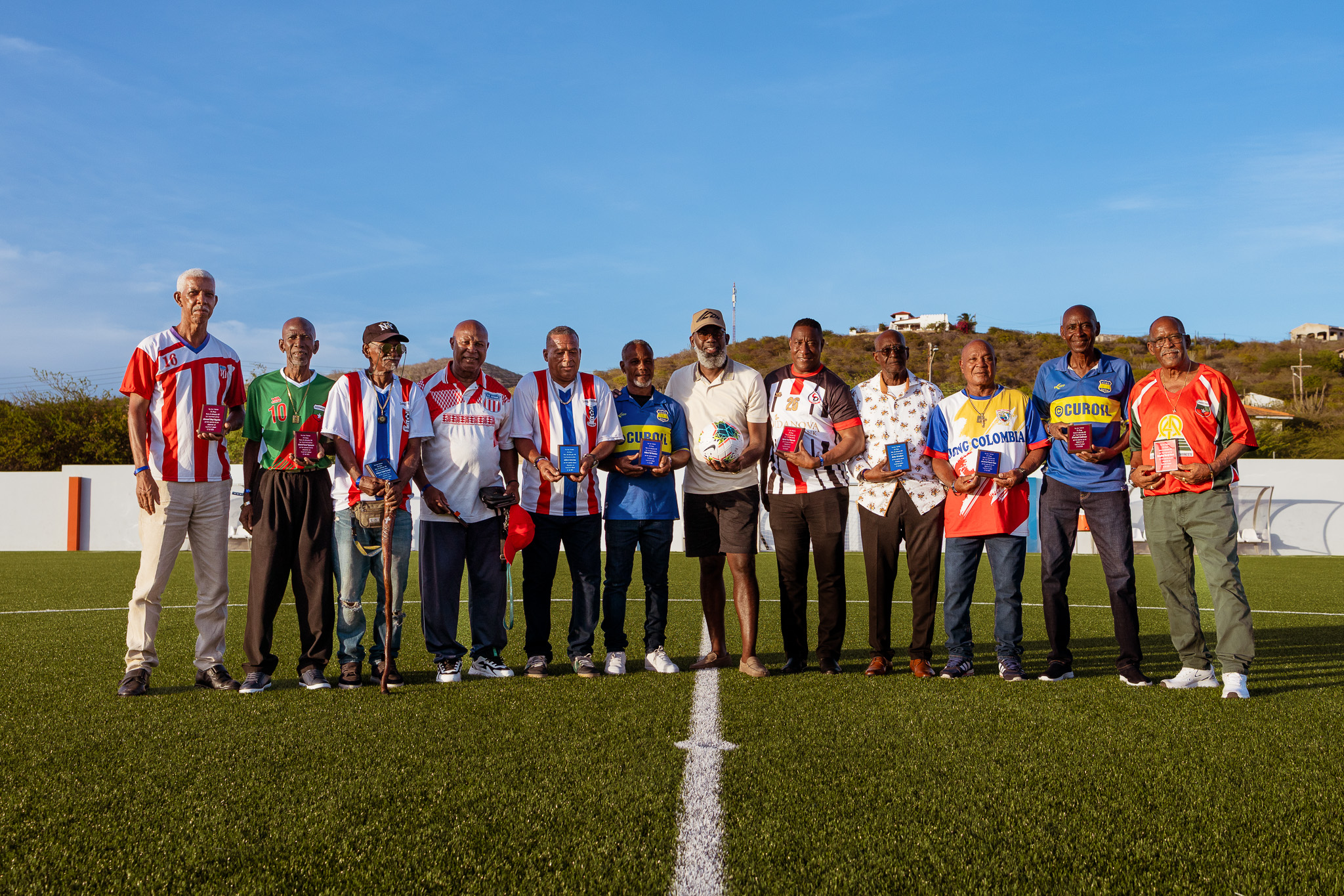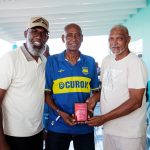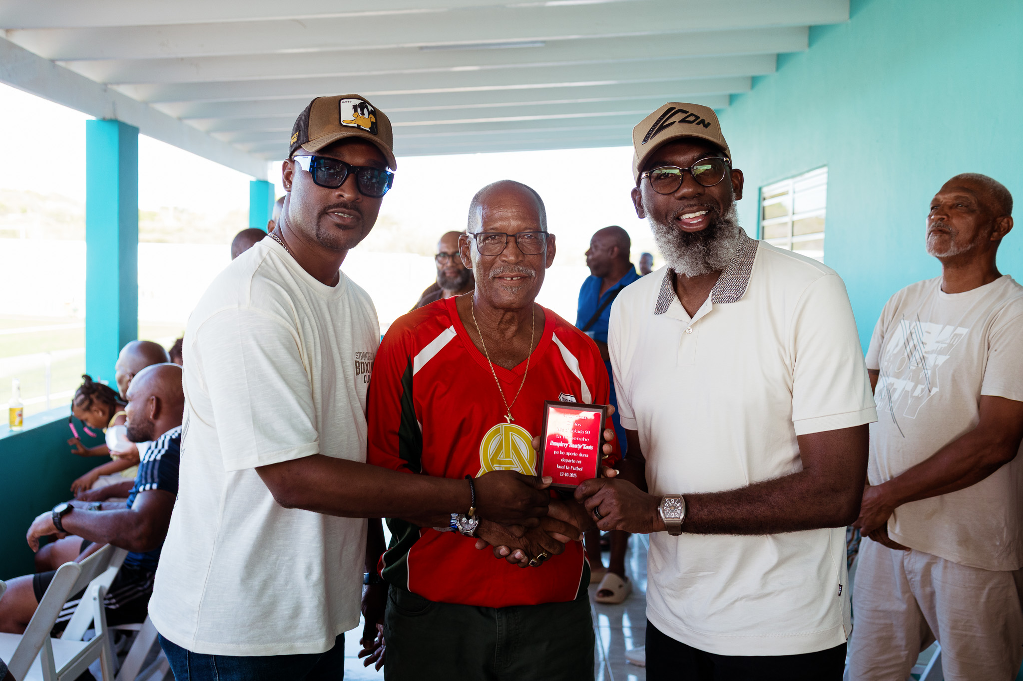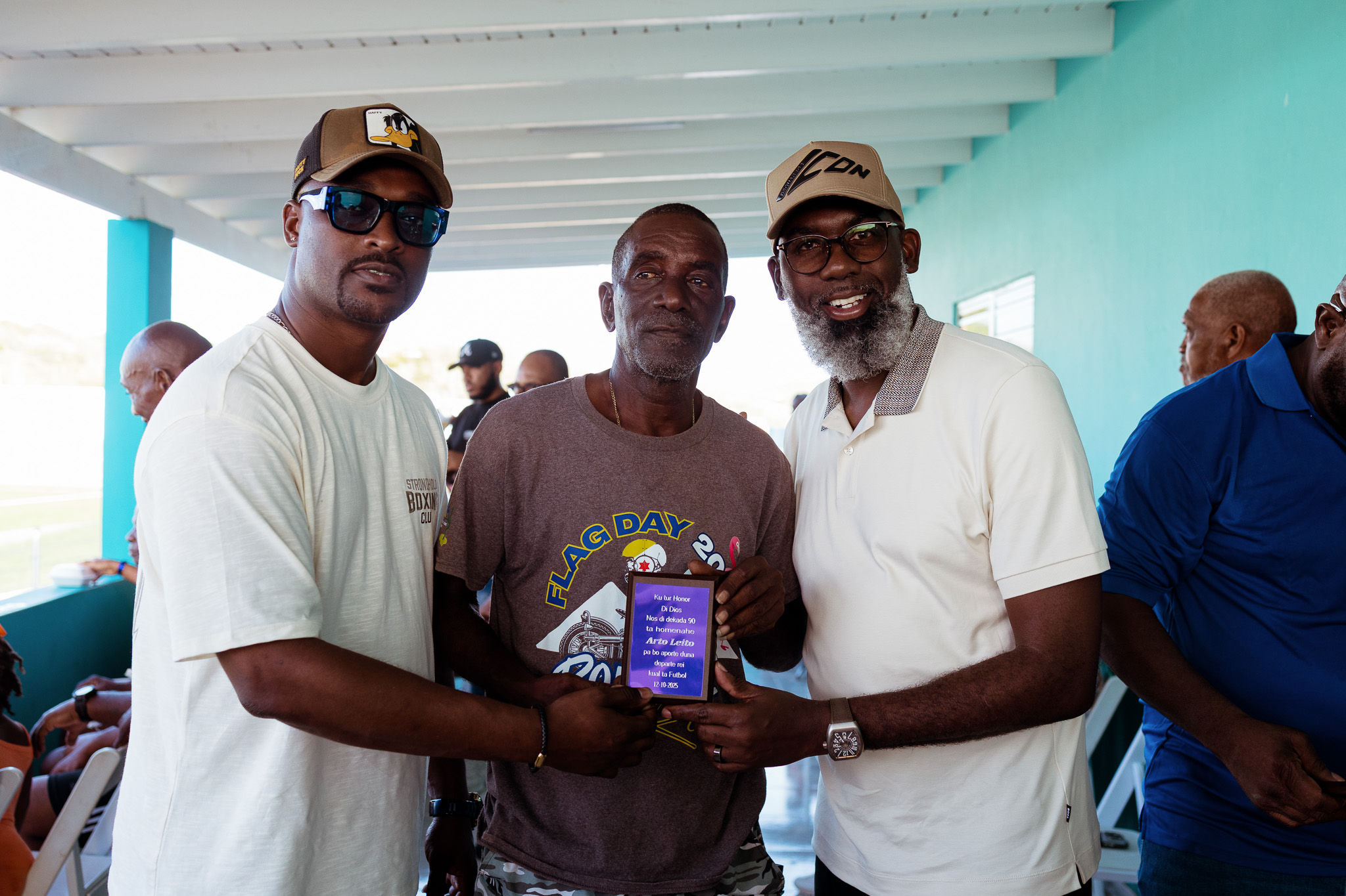 Promé Minister sr. Gilmar Pisas tabata presente durante e okashon pa duna su apresio i rindi un meresido homenahe na esnan ku a kontribuí na e desaroyo di futbòl lokal den añanan nobenta.